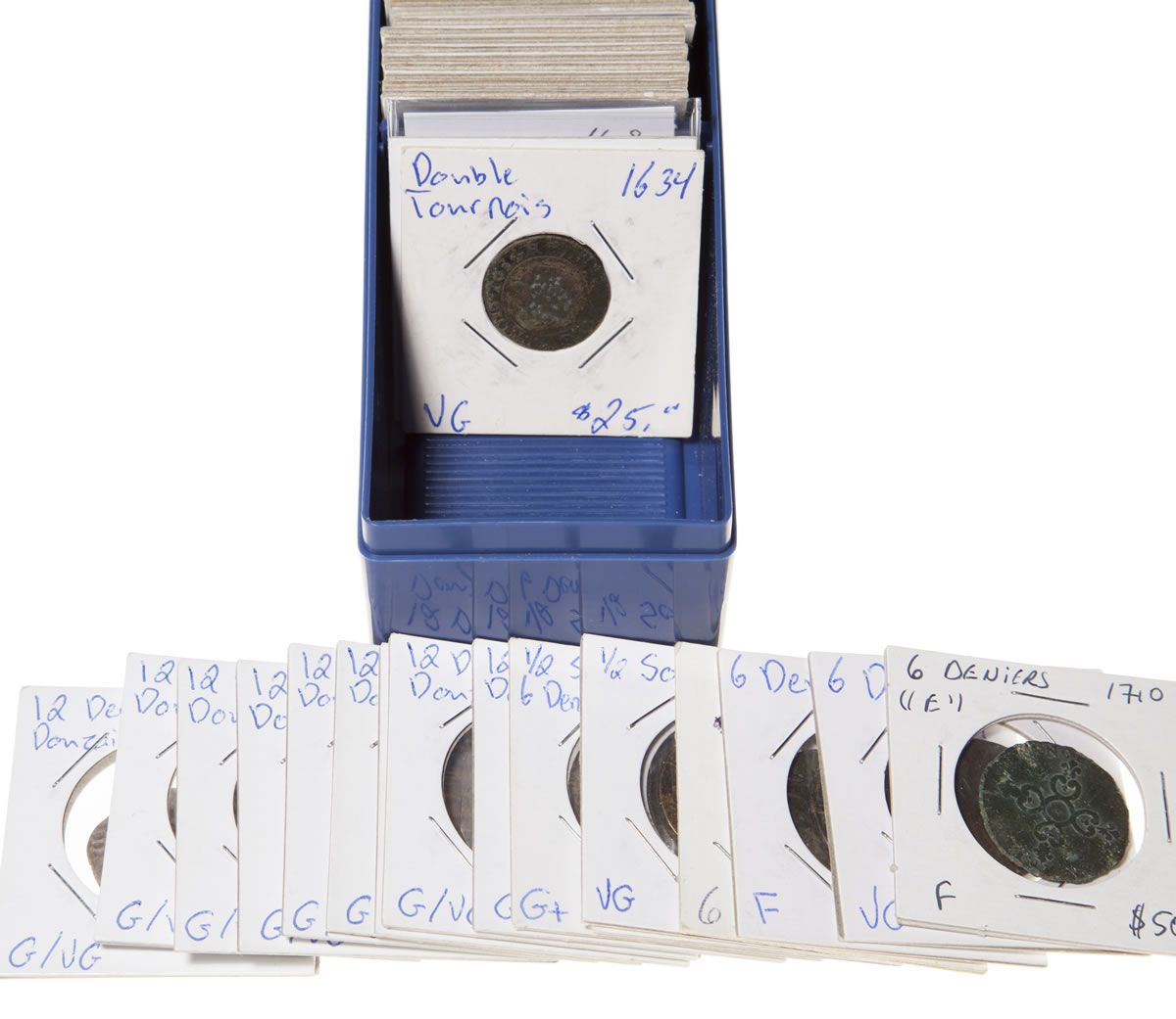 1500s to 1700s, including Deniers, 6 Deniers, 12 Deniers, 1/2 Sols, Double Sols, 10 Sols, 12 Sols, Double Tournois, and Liards de France. Various Grades. Lot of Eight-Three (83) pcs. Sold "as-is", no returns. Viewing recommended.