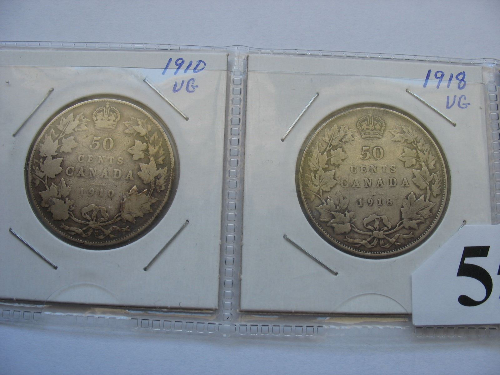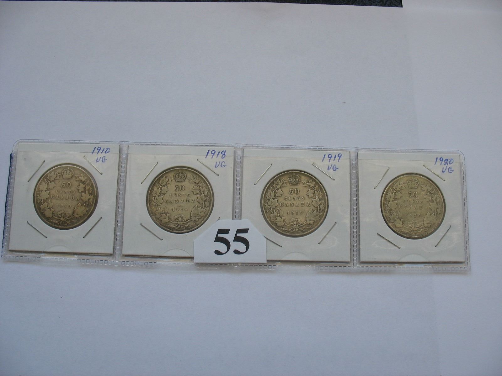 Lot of Canadian Half Dollars (1910, 1918, 1919, 1920)