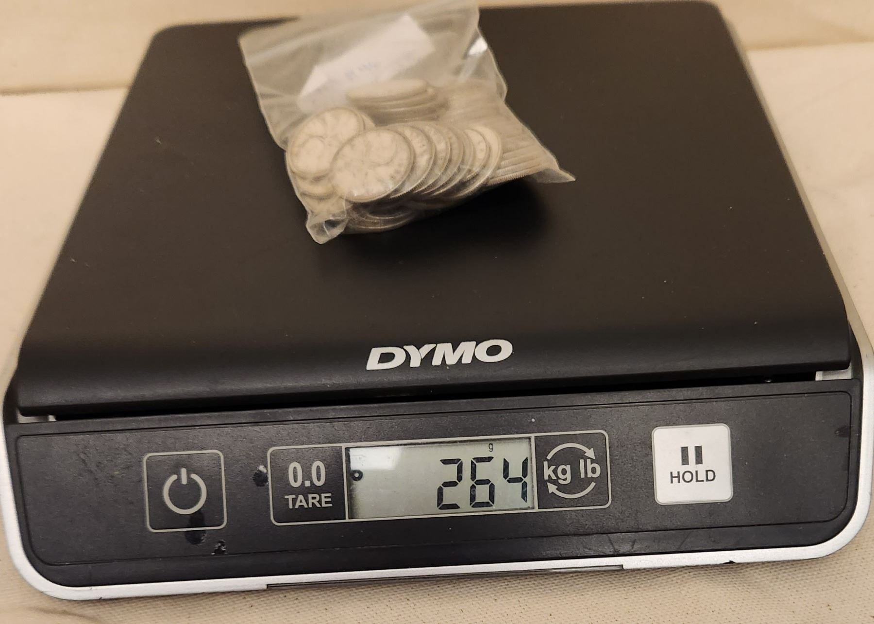 264 grams. 80% silver. Various years. Includes thirty-three quarters and thirty-two dimes.