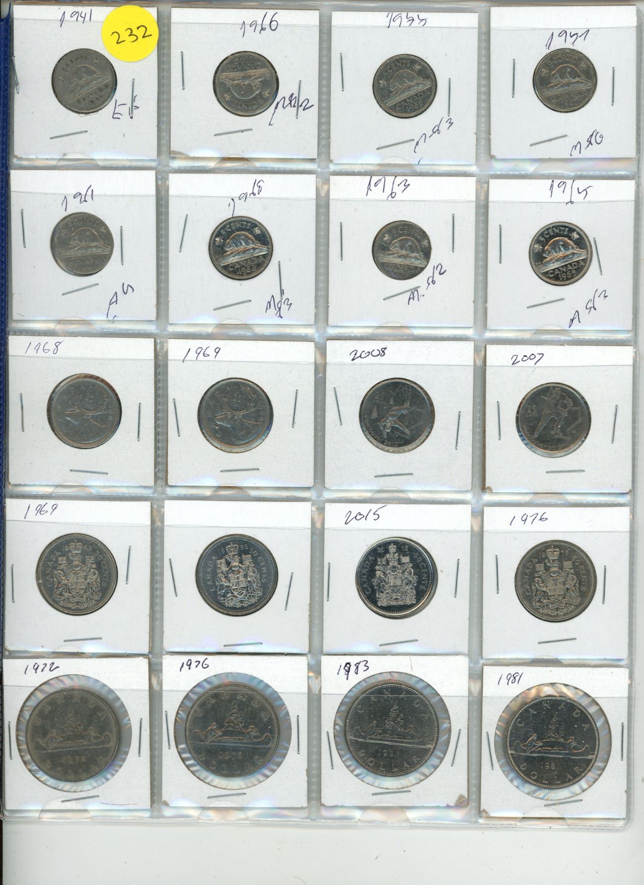 Lot of Canadian Twenty Five, Fifty and One Dollar Coins.