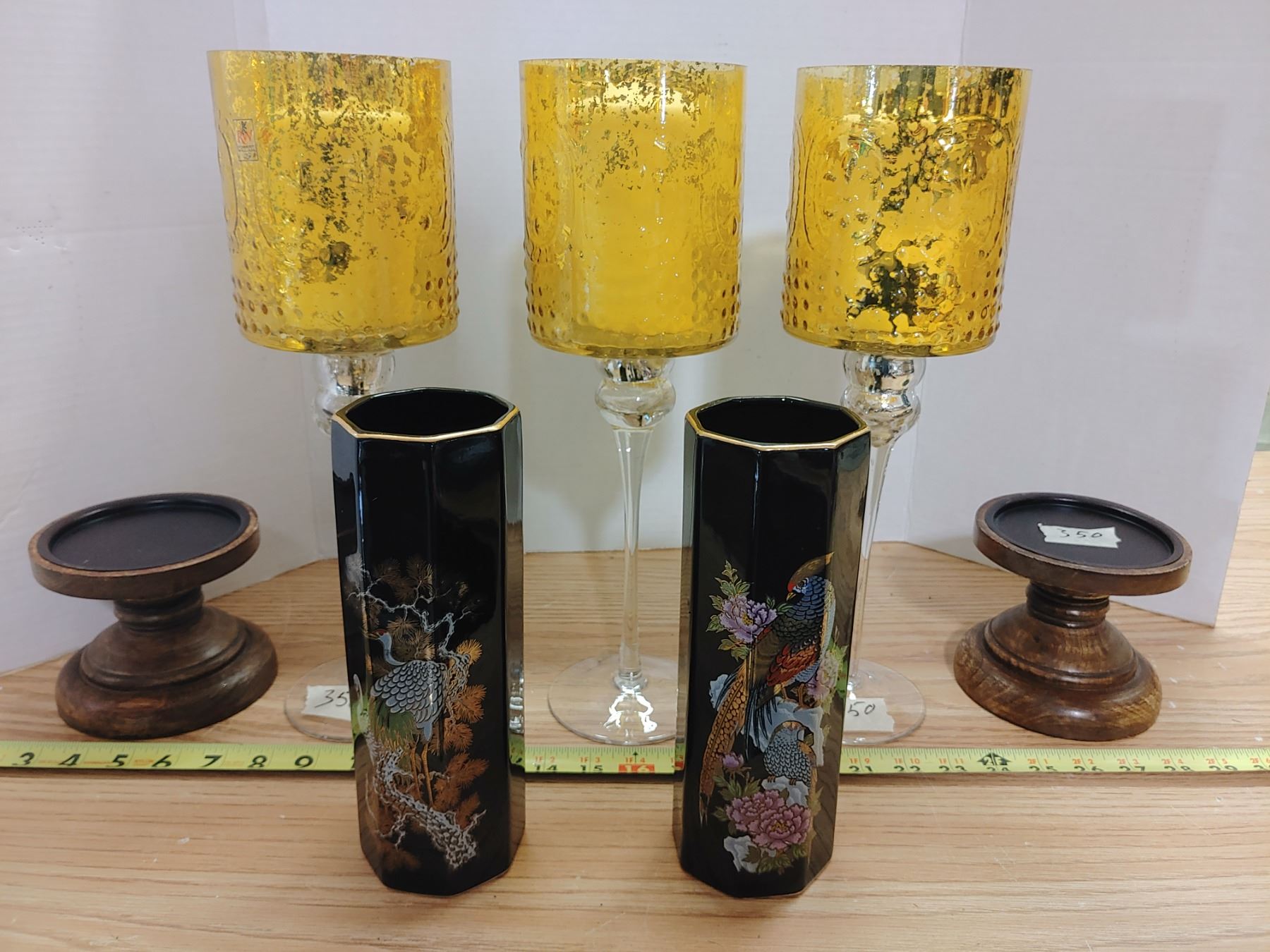 Lot of Candle Holders, Large Yellow Glass, and More!