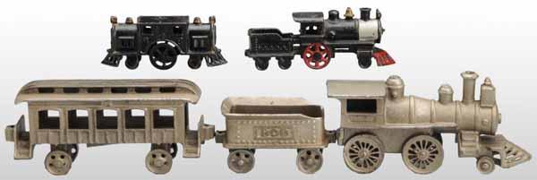 Description American. Includes a three-piece Arcade set consisting of an engine, tender, and pullman car. Also includes an A.C. Williams engine and tender along with an electric-type engine. Some moderate wear. Condition (Very Good - Excellent). Size Largest: 18" L.