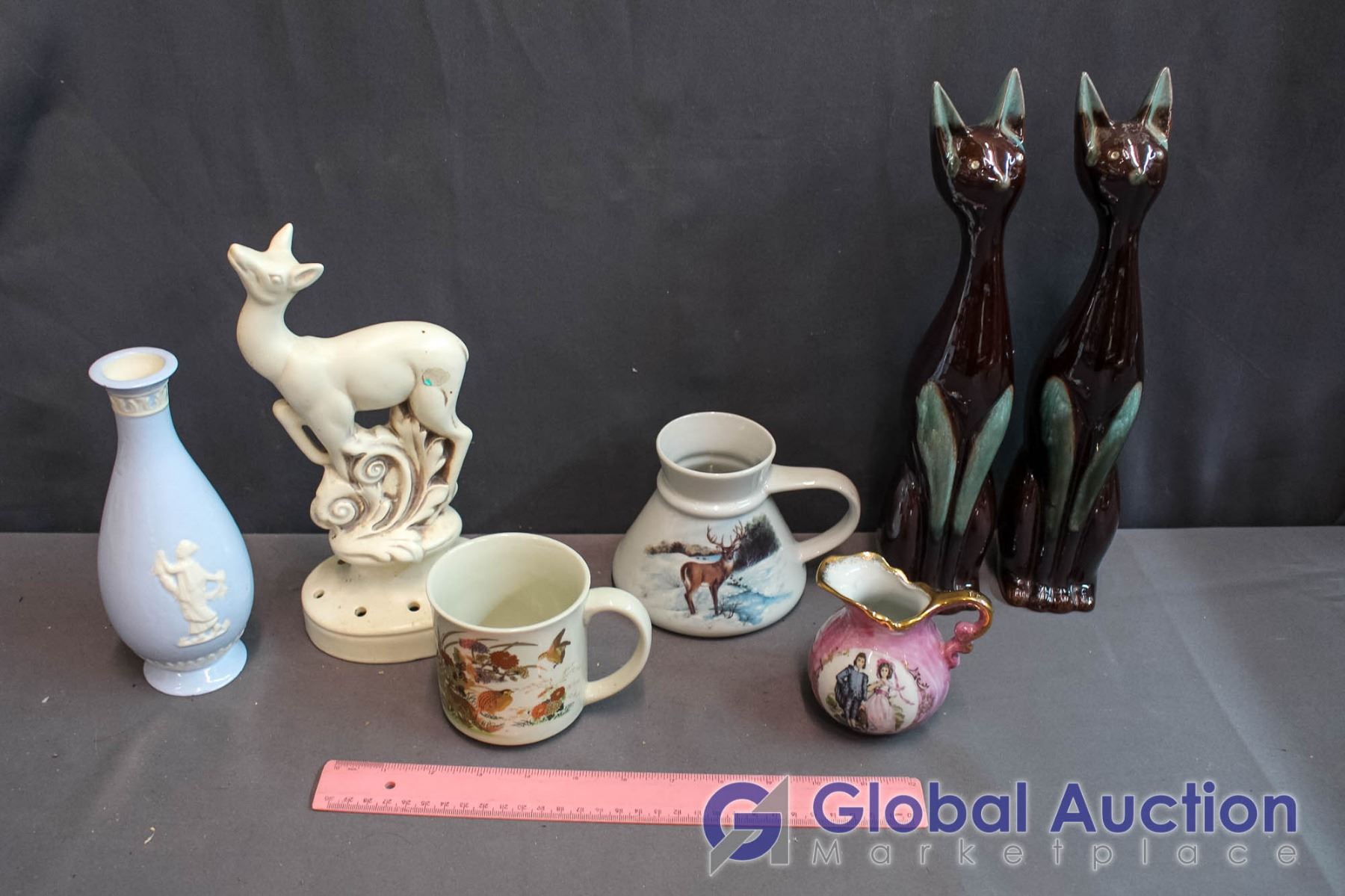 Lot of Ceramic Decor, Vintage Cat Figures