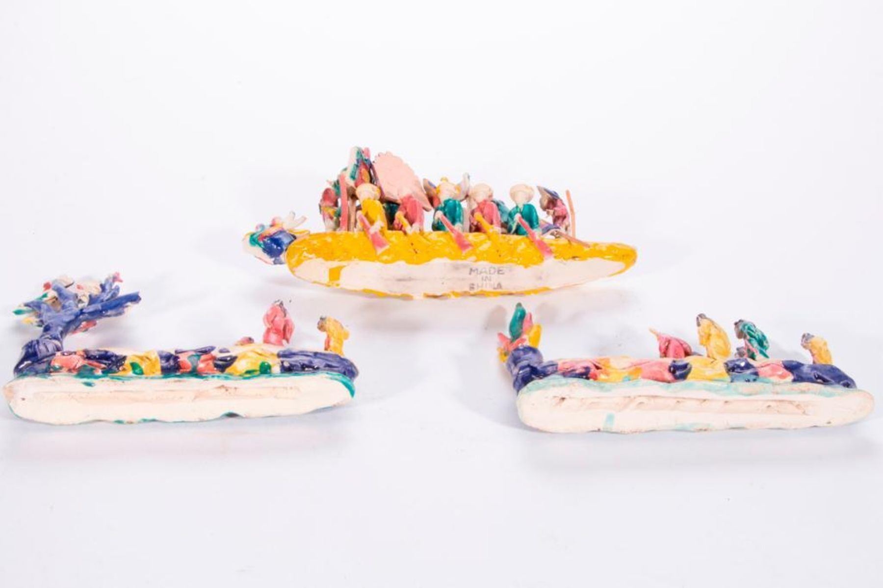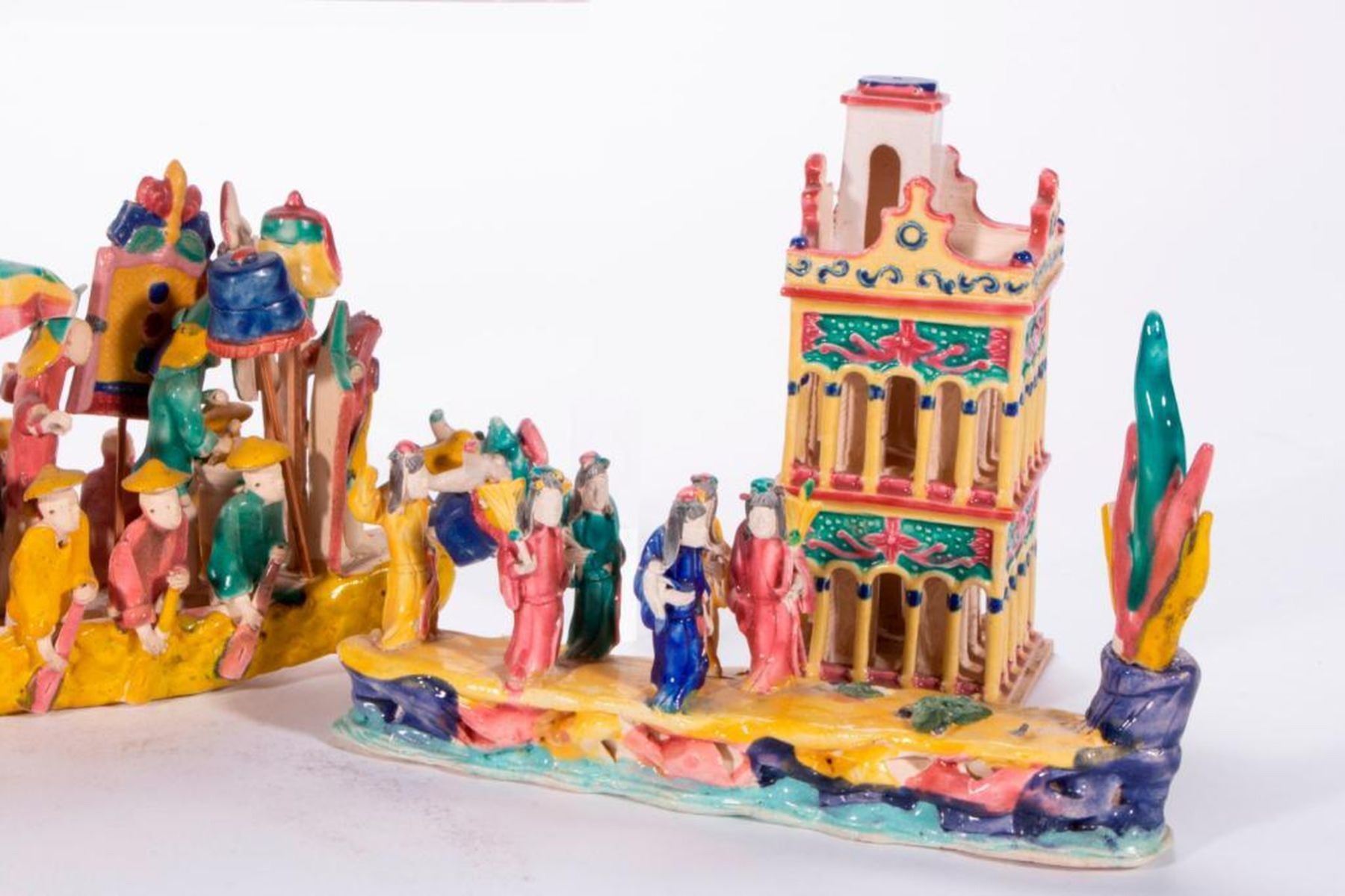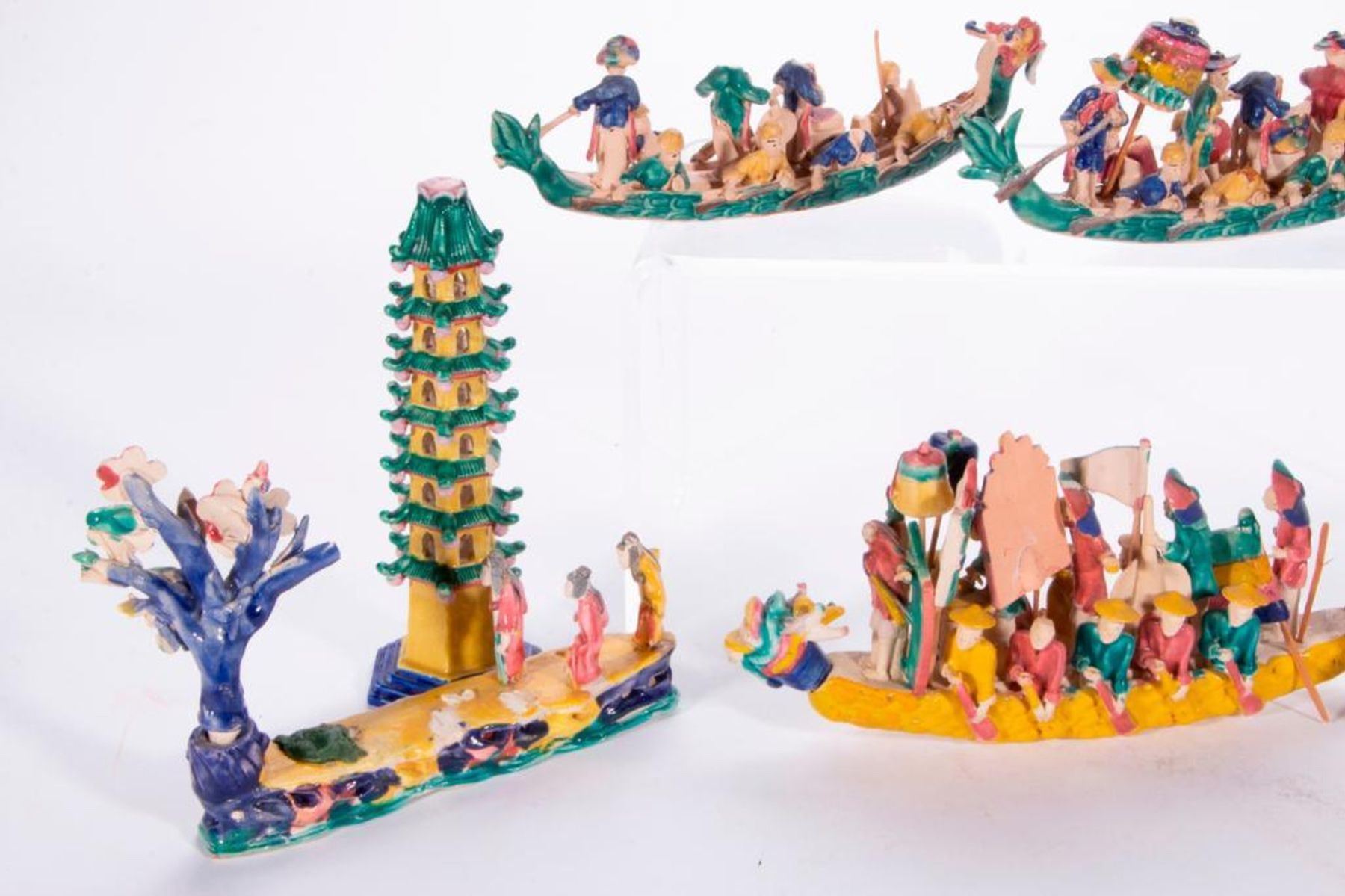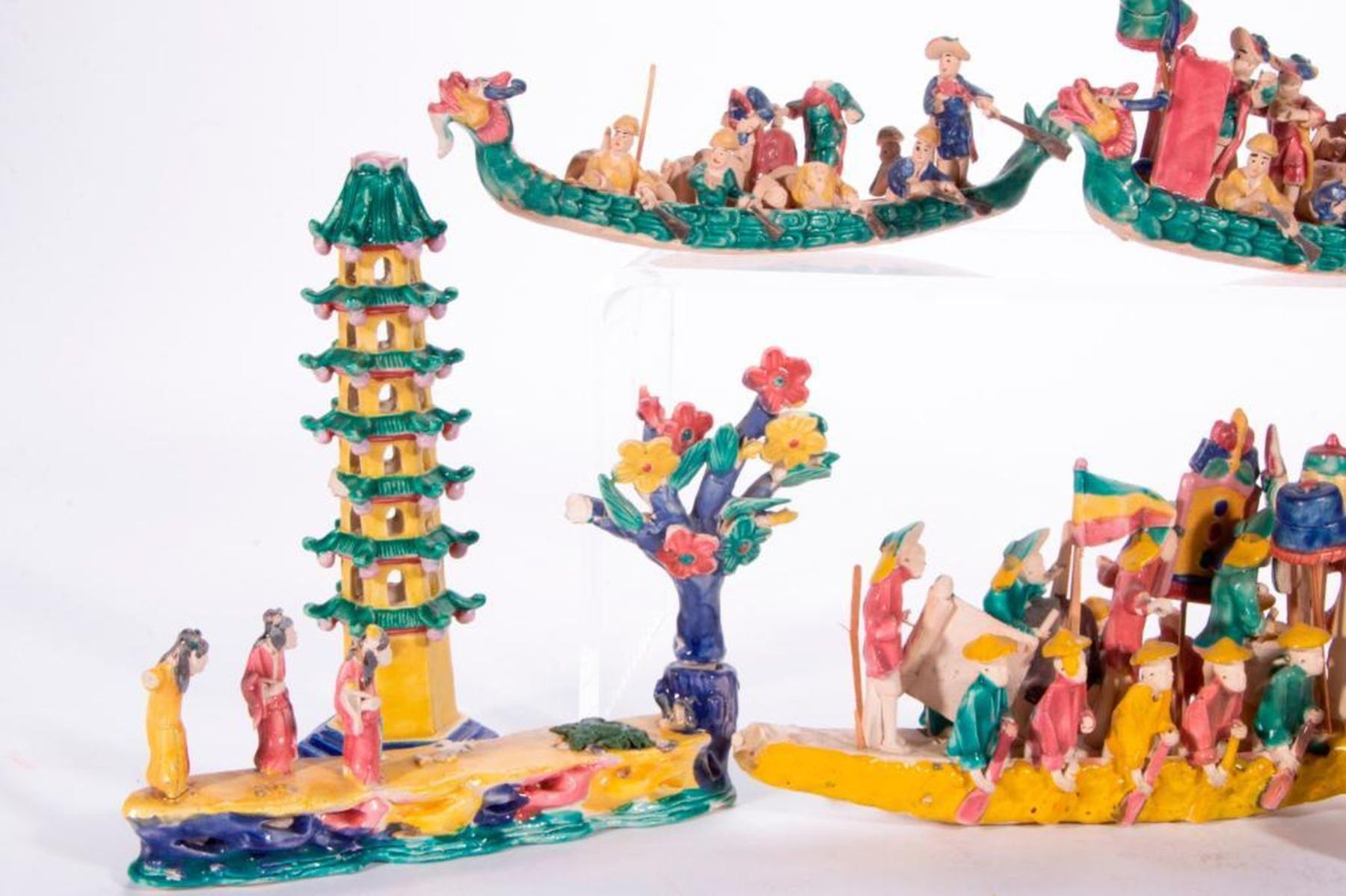 A lot of Chinese terra cotta miniatures including buildings and multi figured boats. Items are sold as is. Please inquire about condition if not otherwise stated.