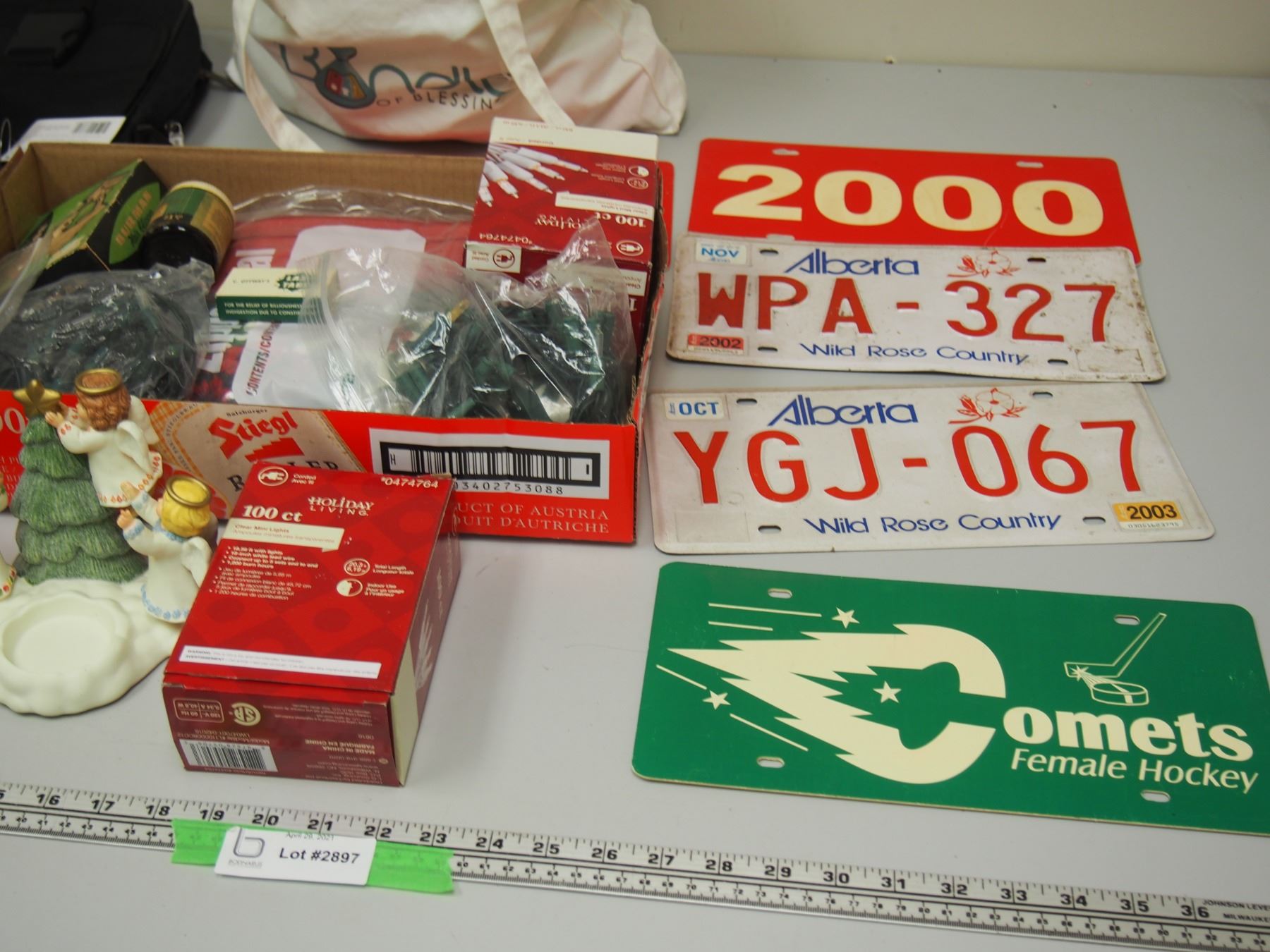 Lot of Christmas Decorations, Licence Plates, Plus Misc
