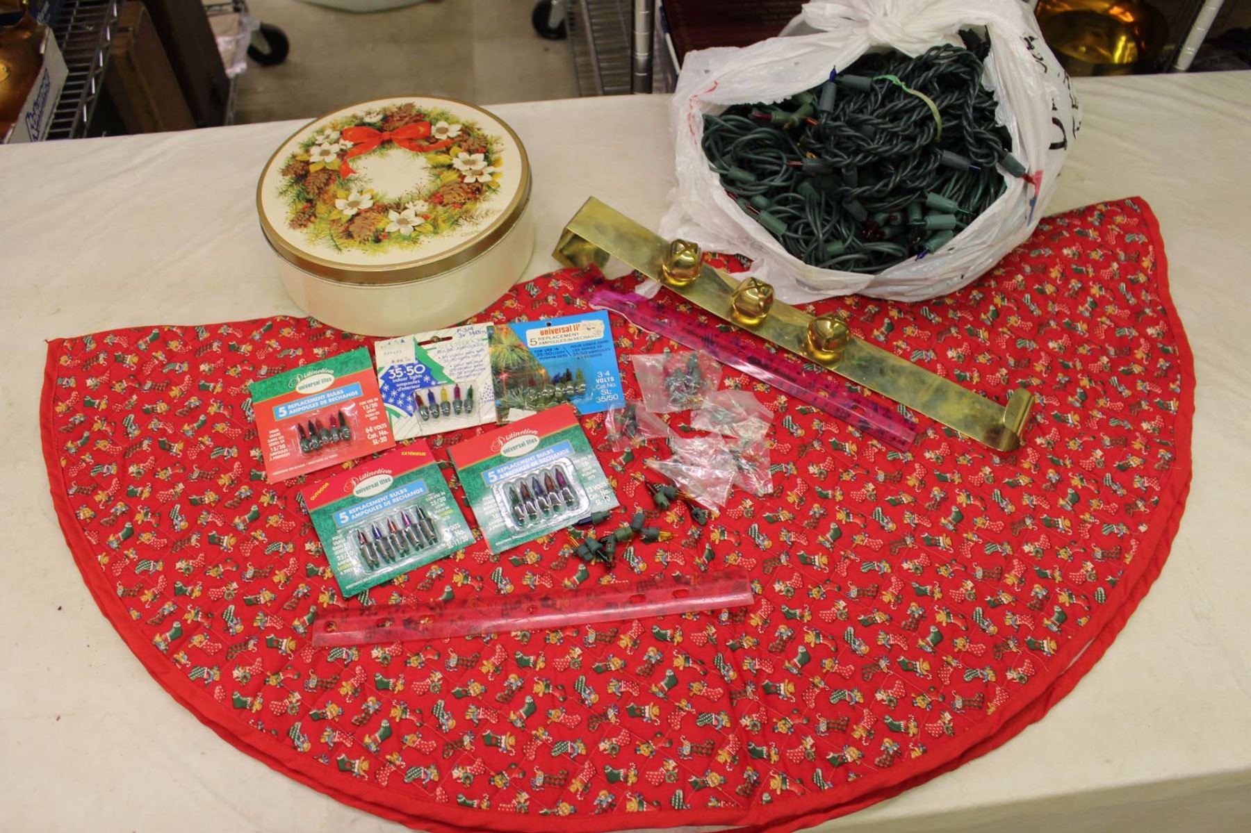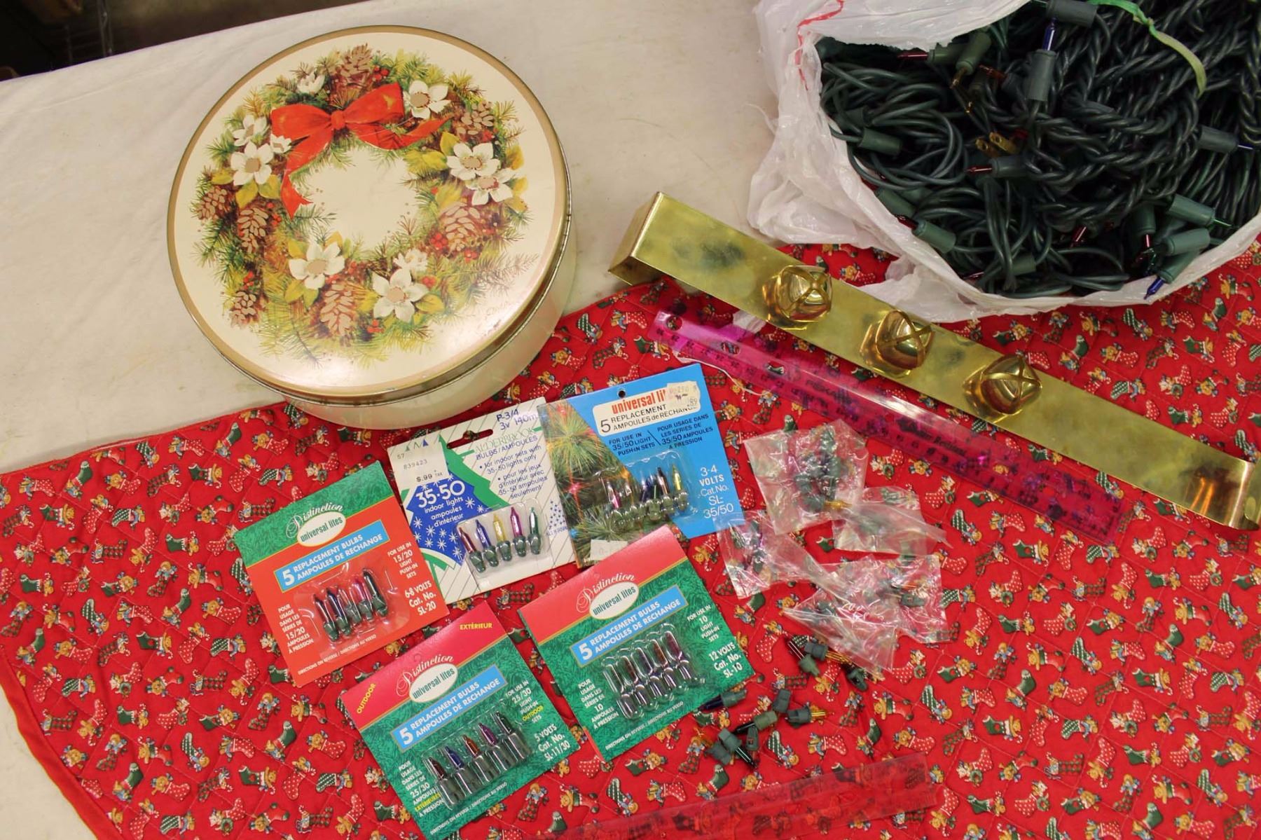 Lot of Christmas Related (Lights, Bells, Table Cover, Etc;)