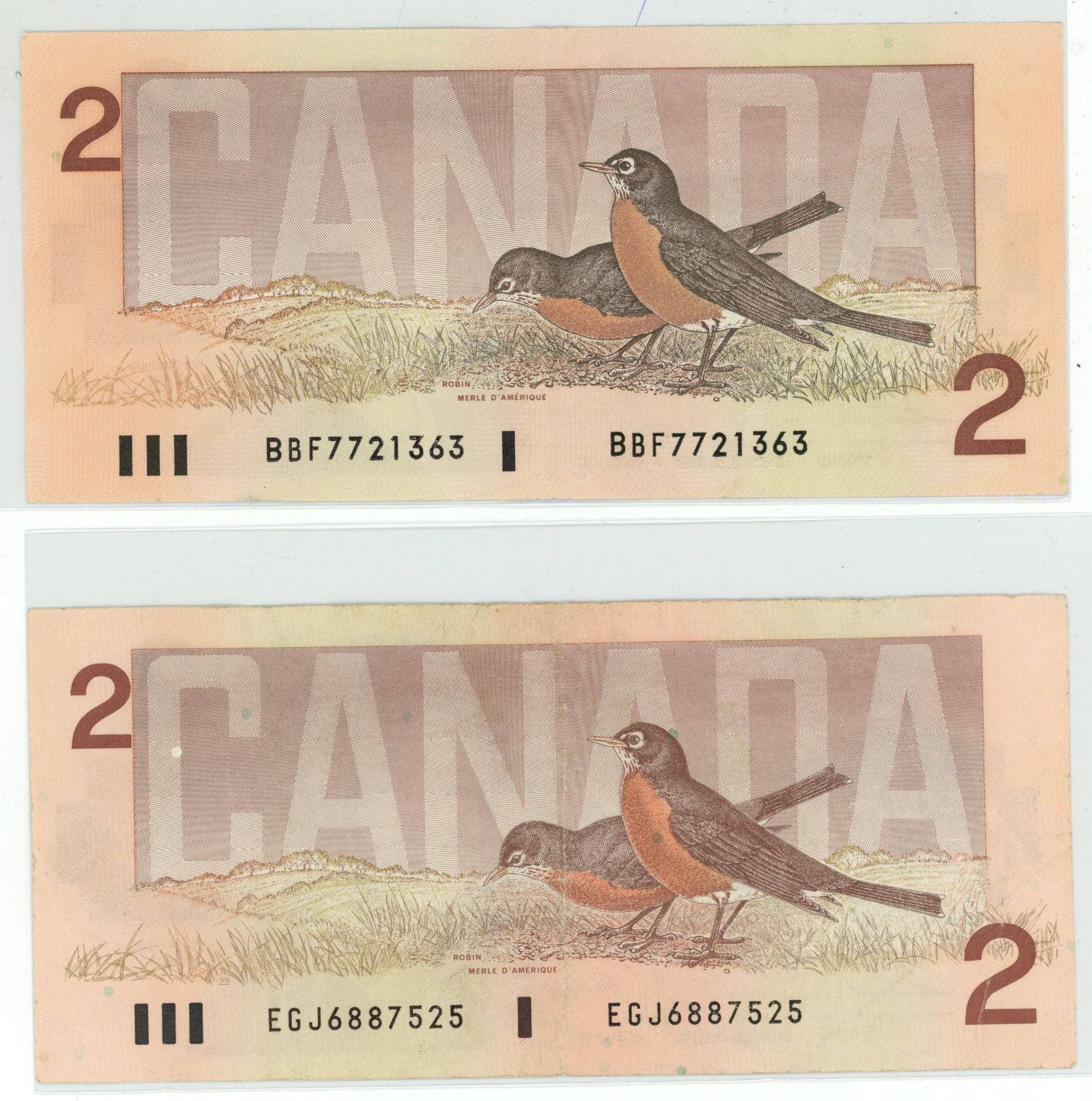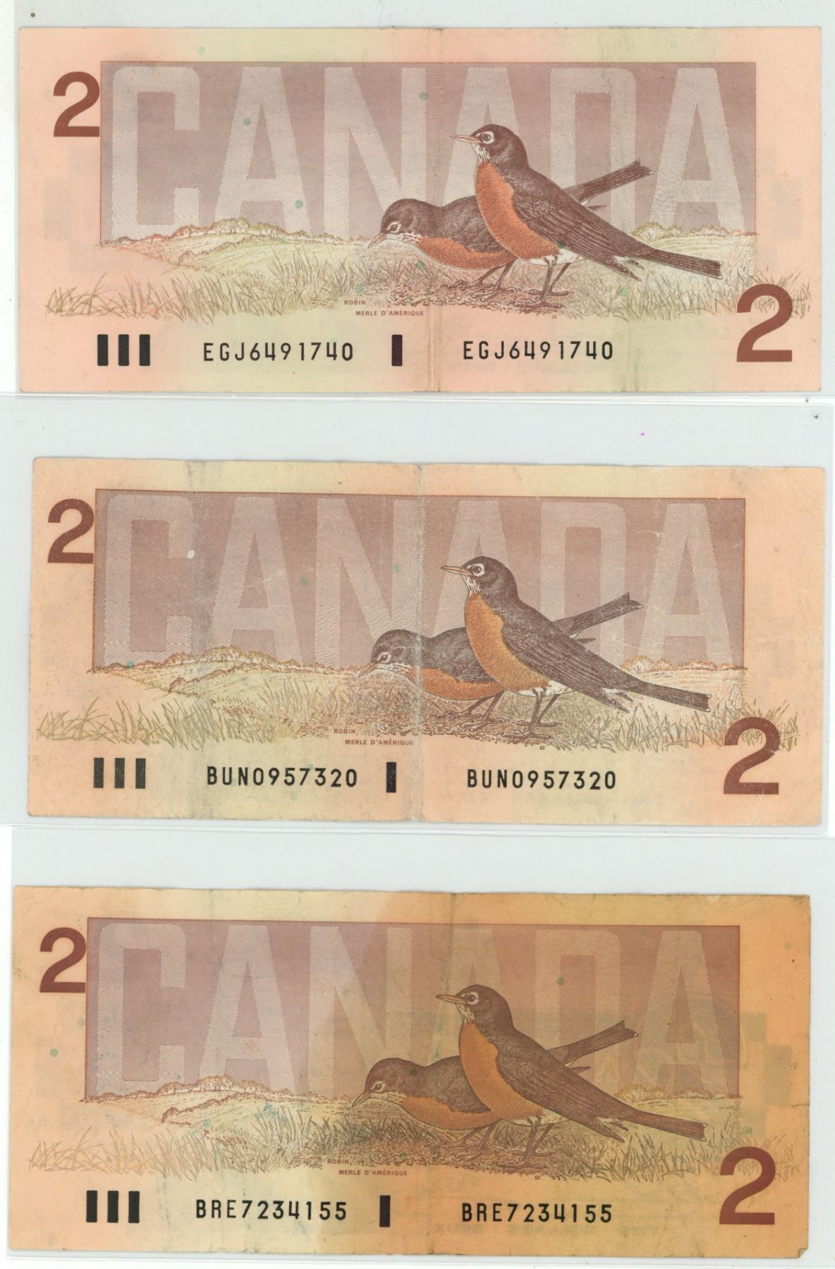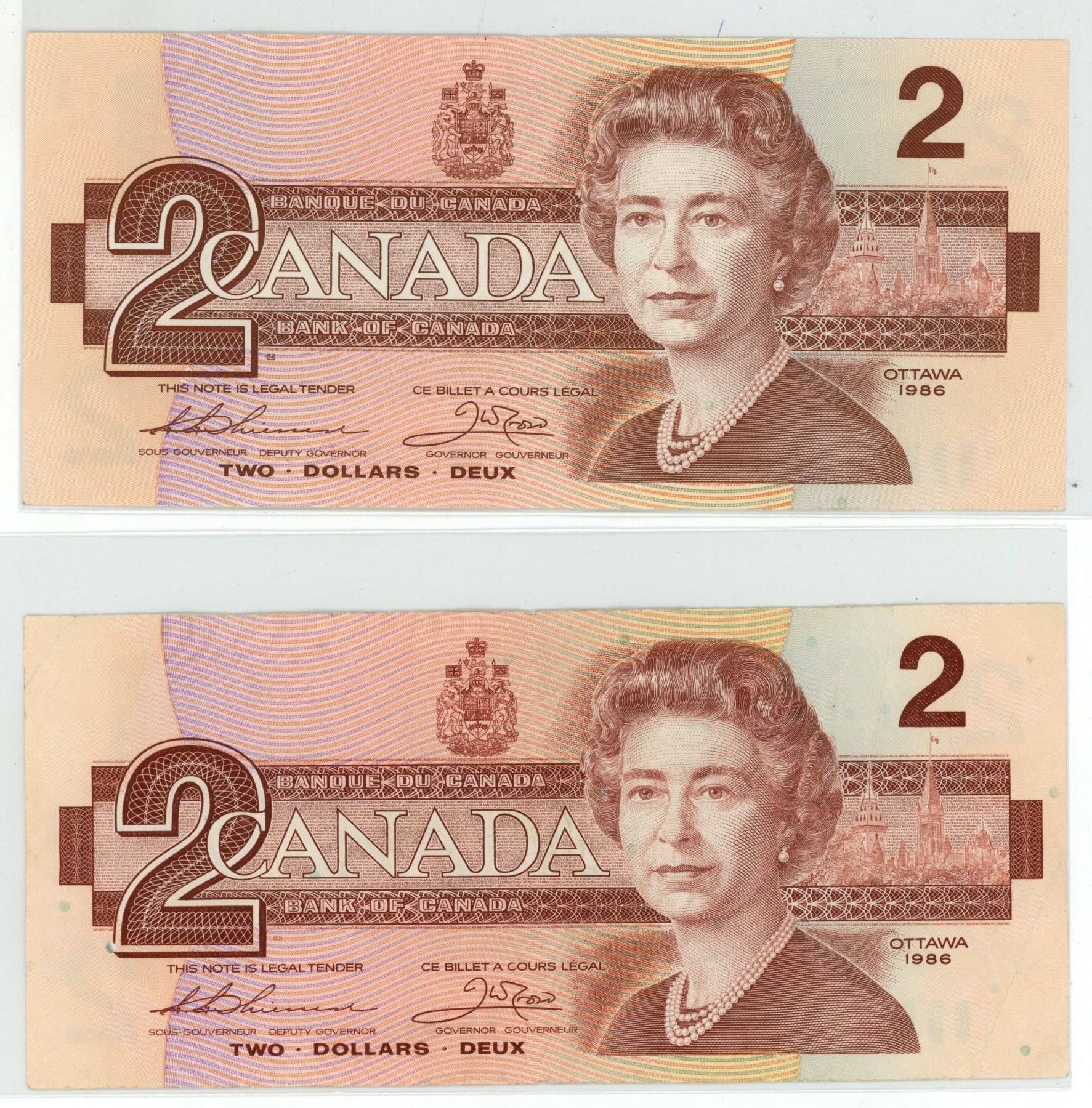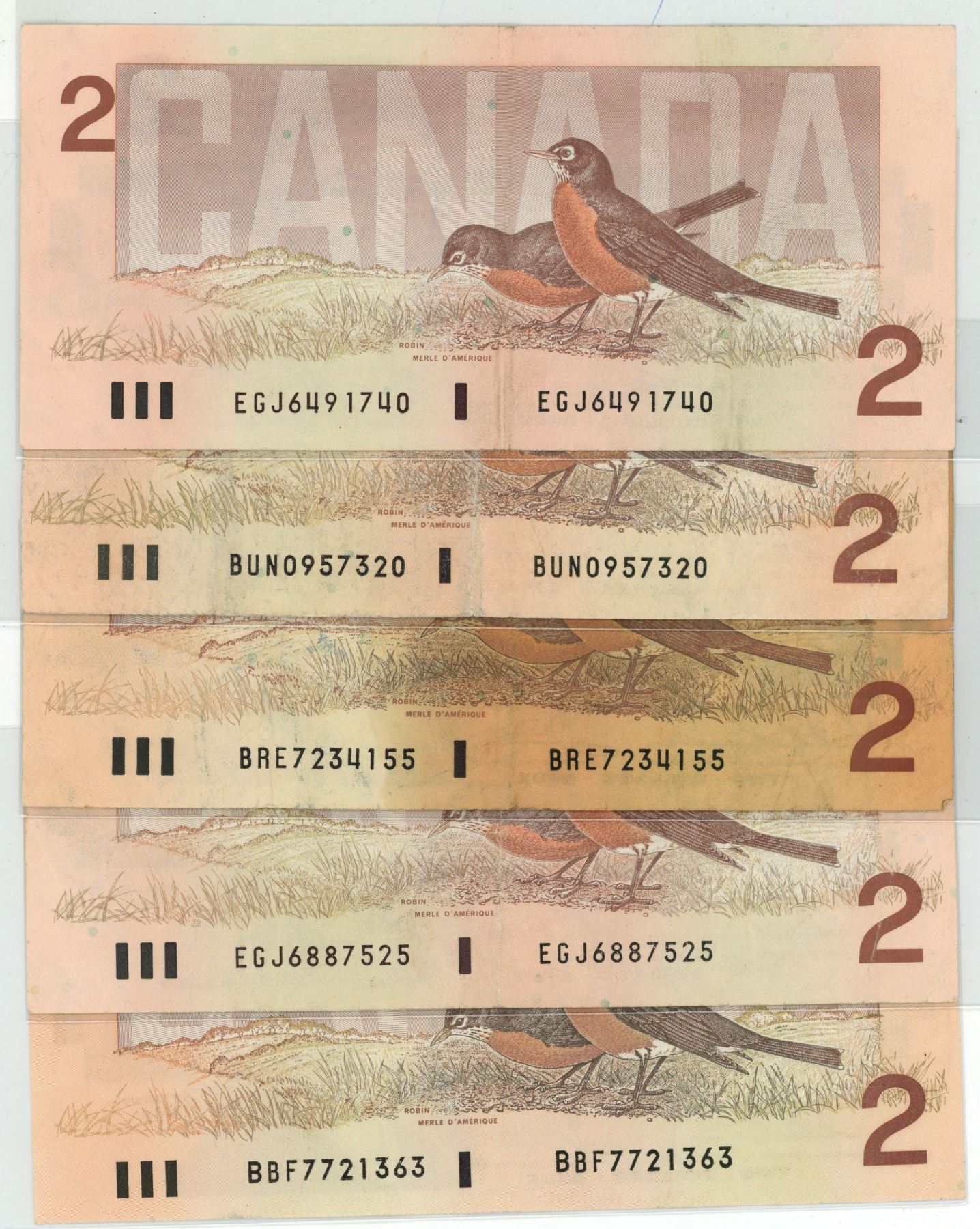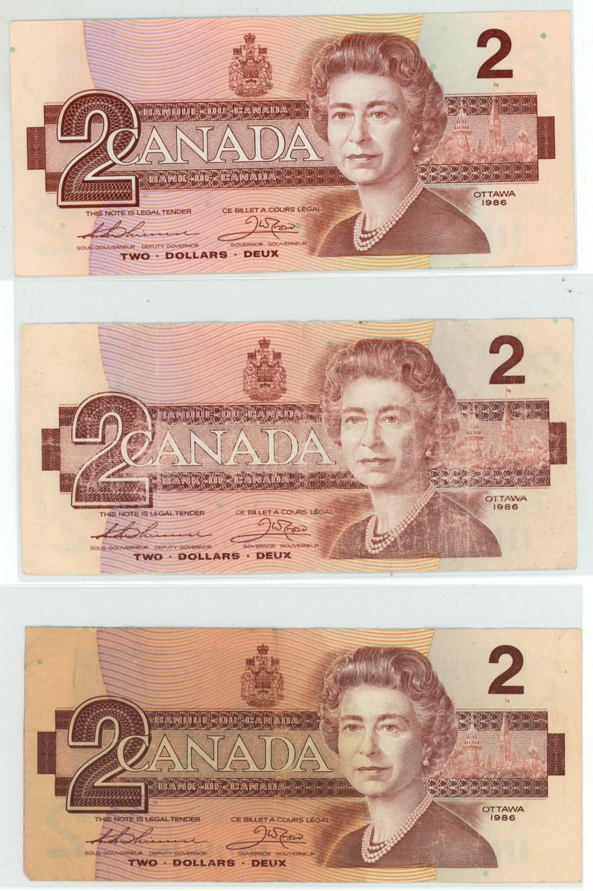 Lot of Circulated 1986 Canada $2 Bills - Thiessen/Crow