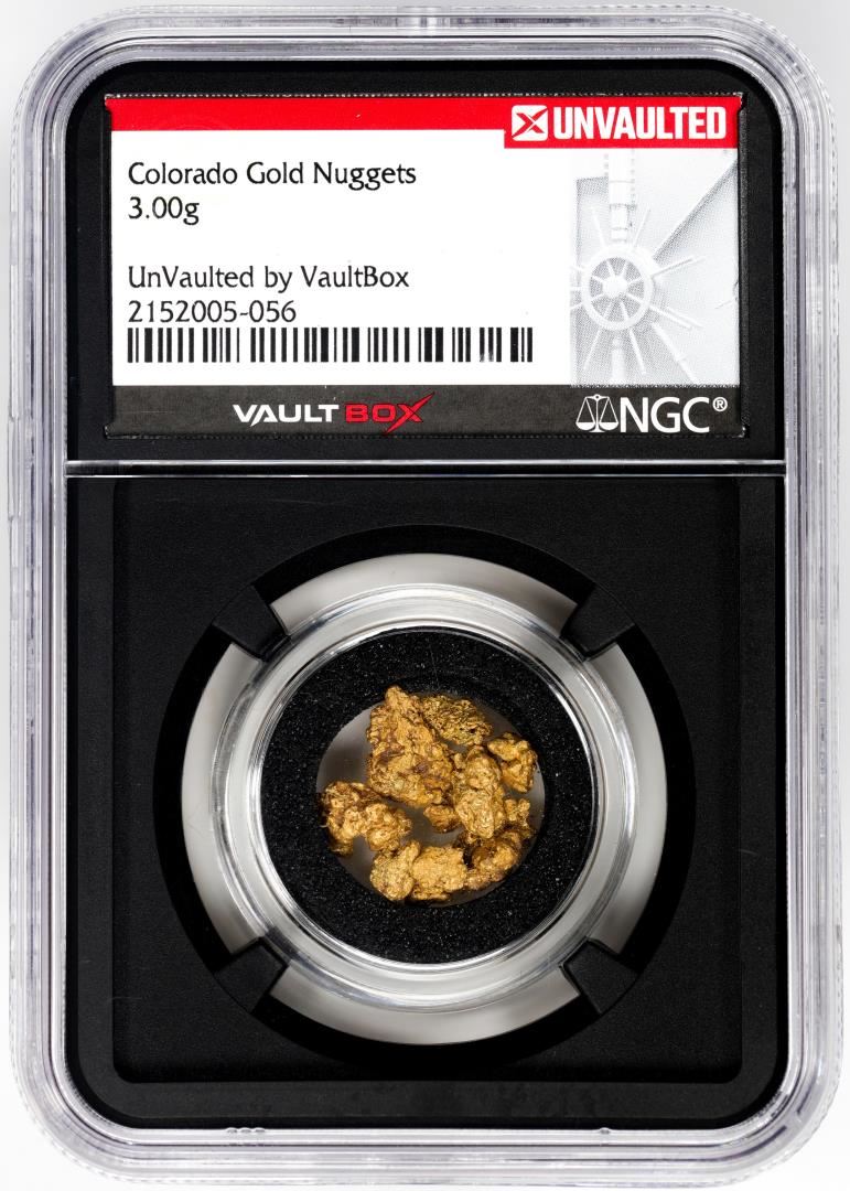 One Lot of Colorado Gold Nuggets 3.00 Grams Total Weight NGC Vaultbox Unvaulted. NGC Certified.