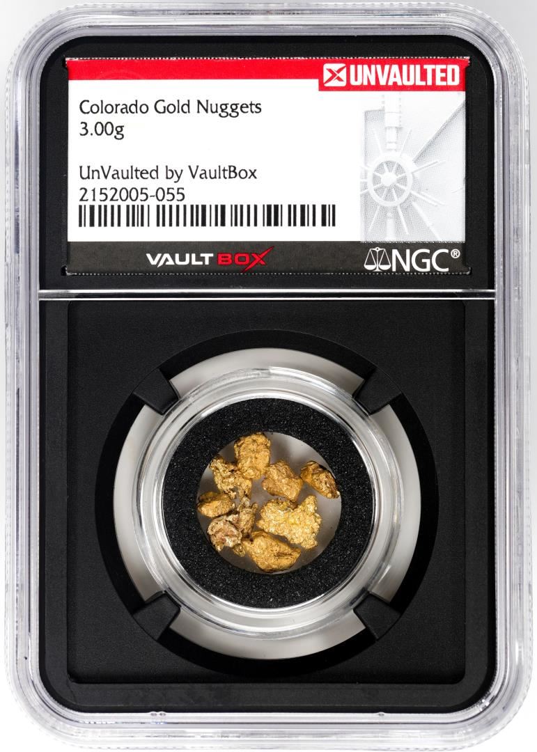 One Lot of Colorado Gold Nuggets 3.00 Grams Total Weight NGC Vaultbox Unvaulted. NGC Certified.