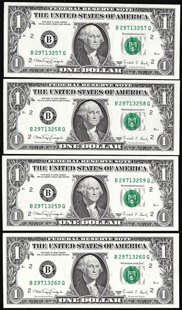 Lot of Consecutive 1988A $1 Federal Reserve Notes with (1) Missing Third Print Error
