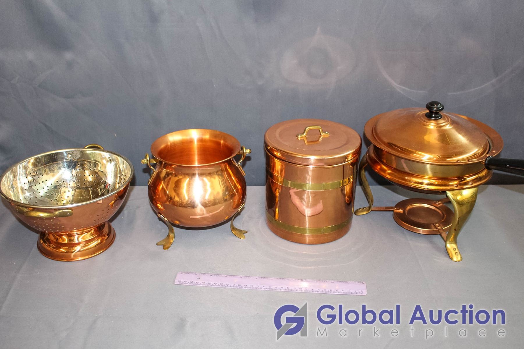 Lot of Copper Kitchenware (Canister, Fondue Pot, Colander, etc)