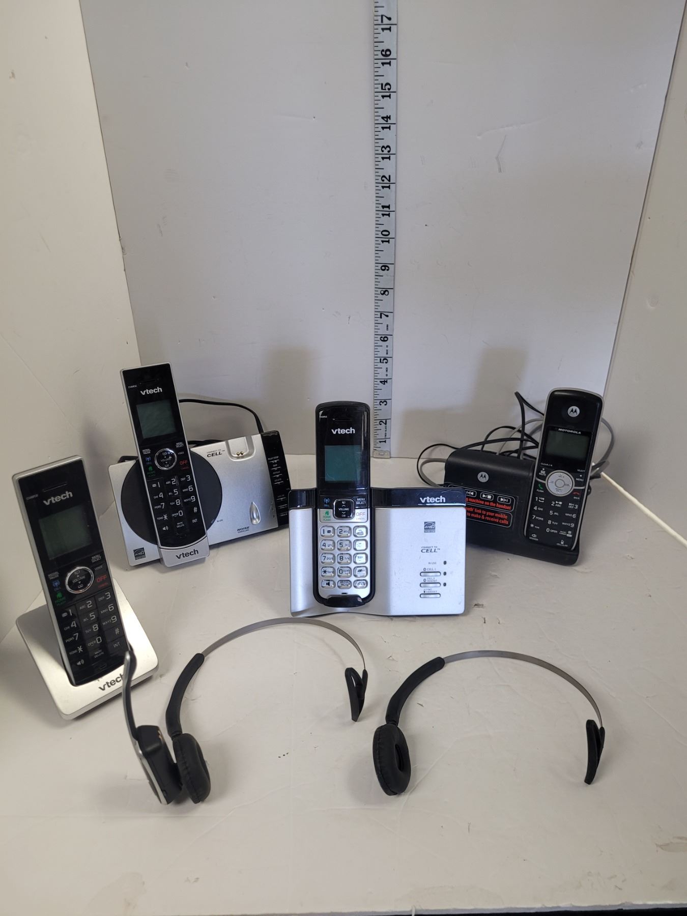 Lot of Cordless Phones with Bases | Headsets. Untested