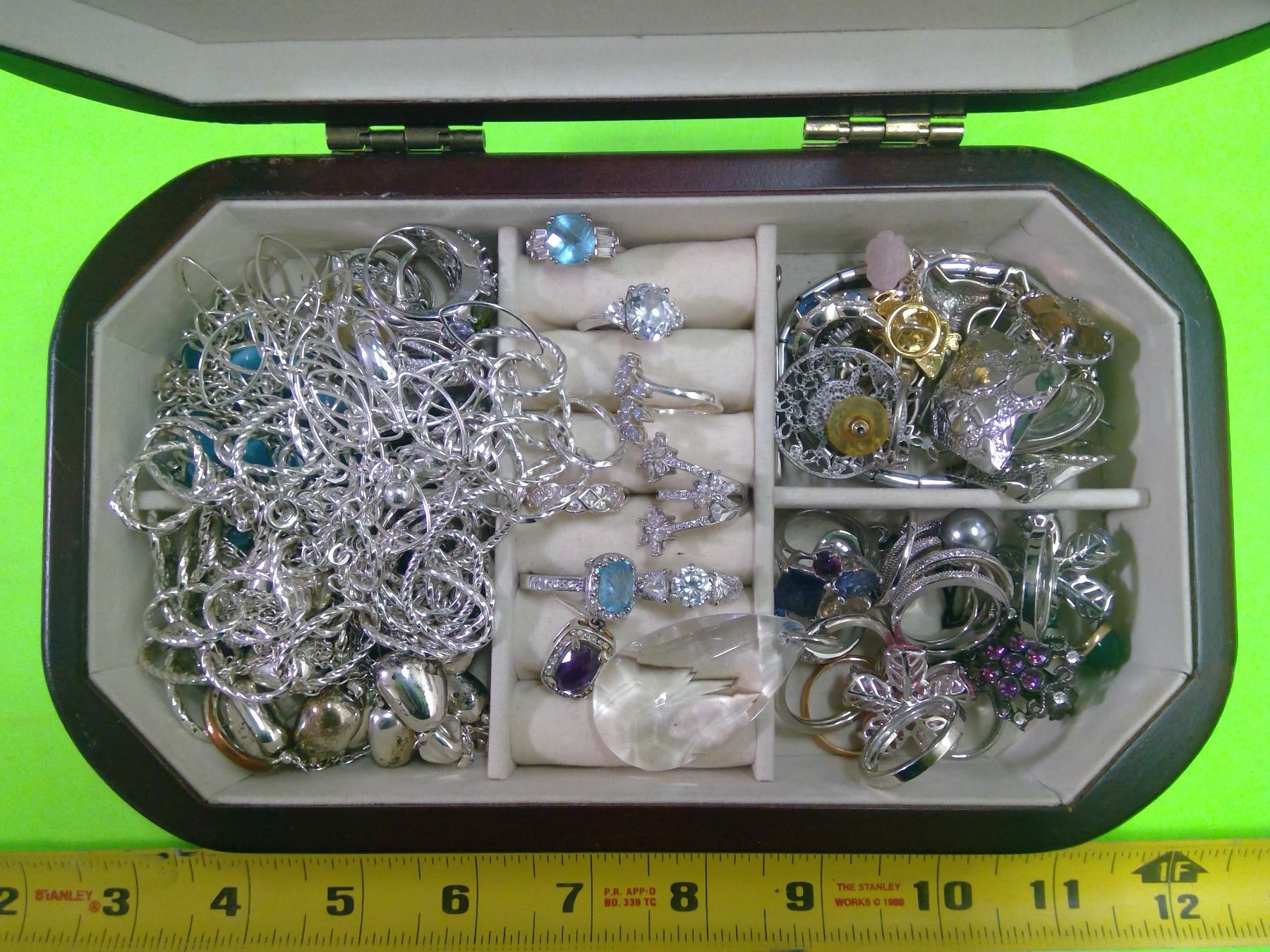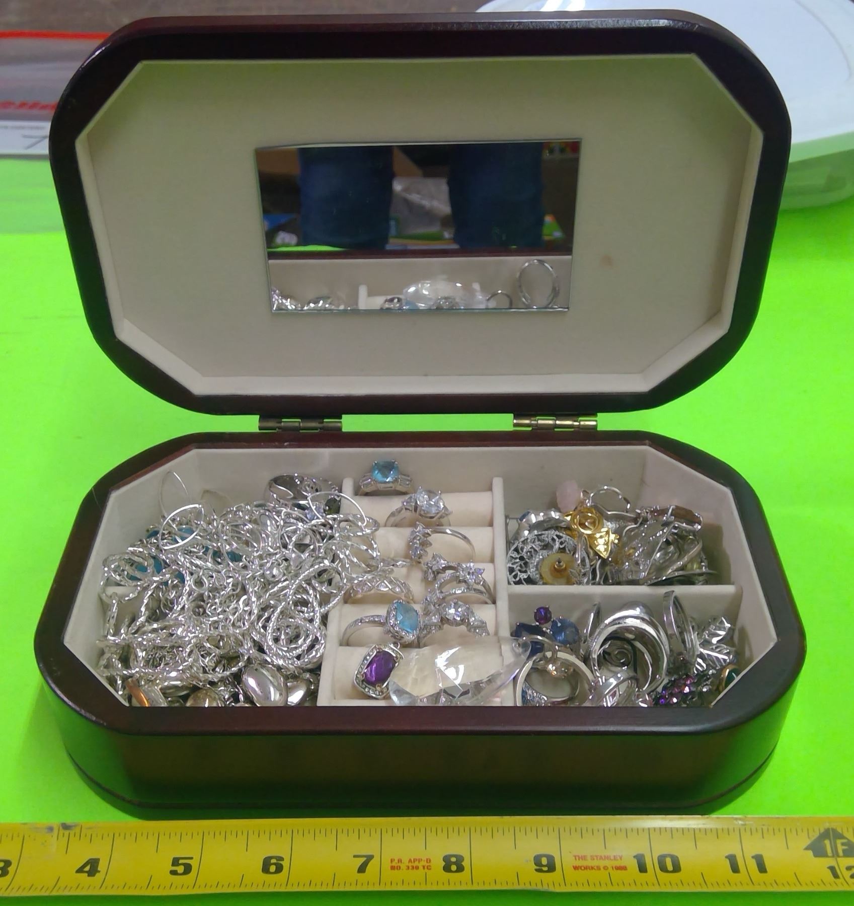 Lot of Costume Jewellery in Wooden Box with Mirror
