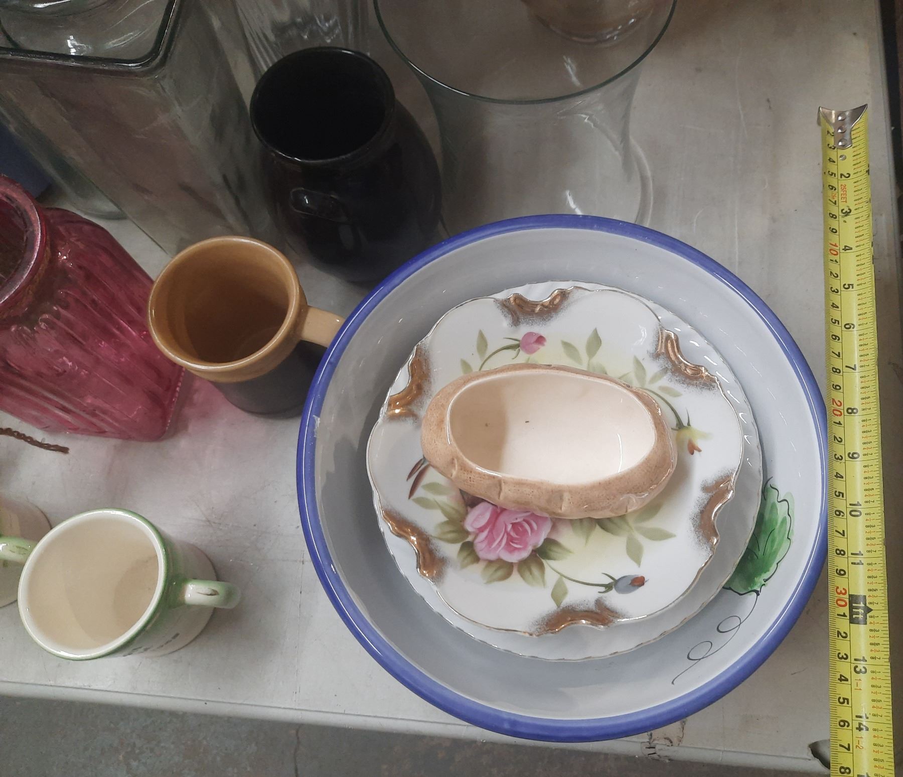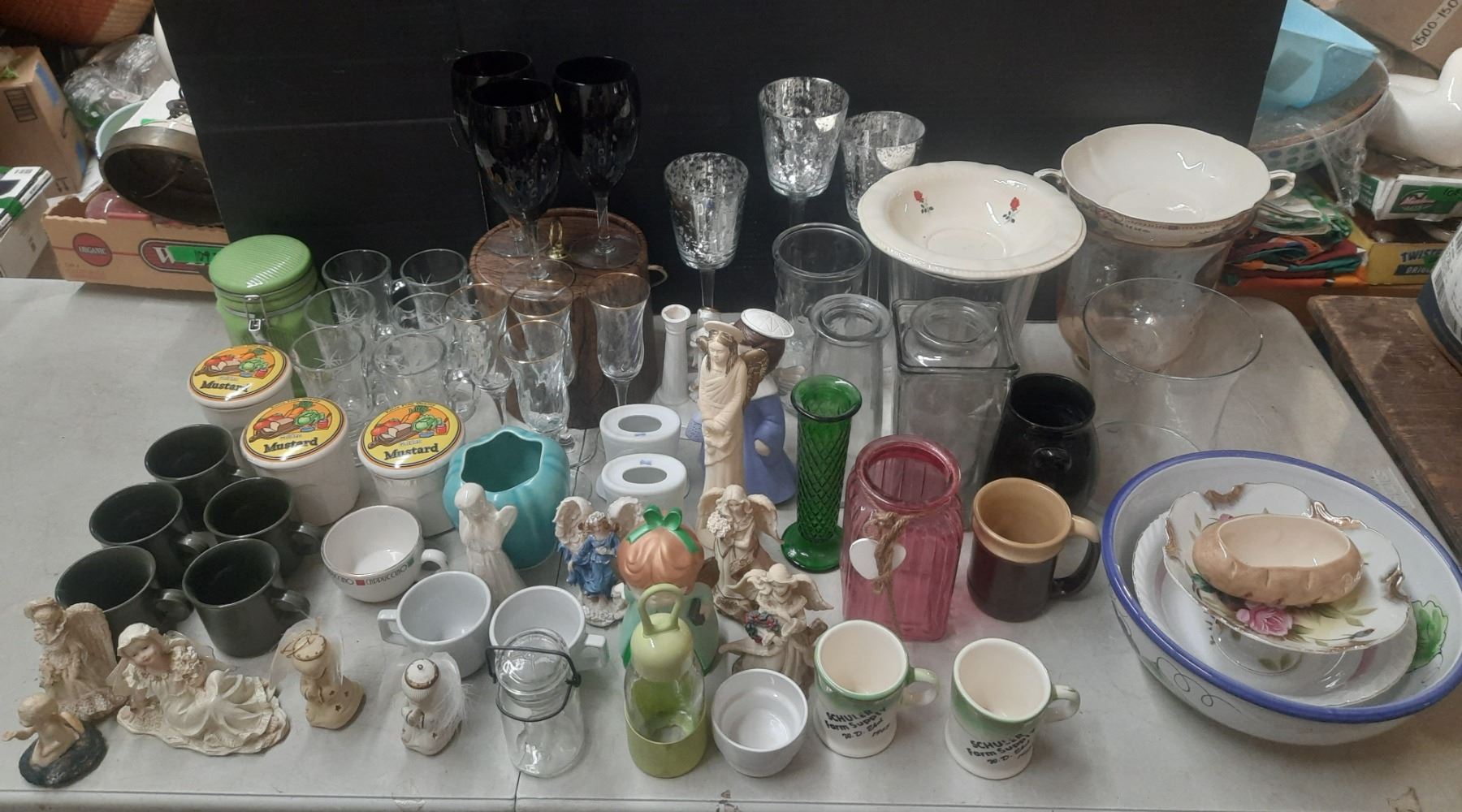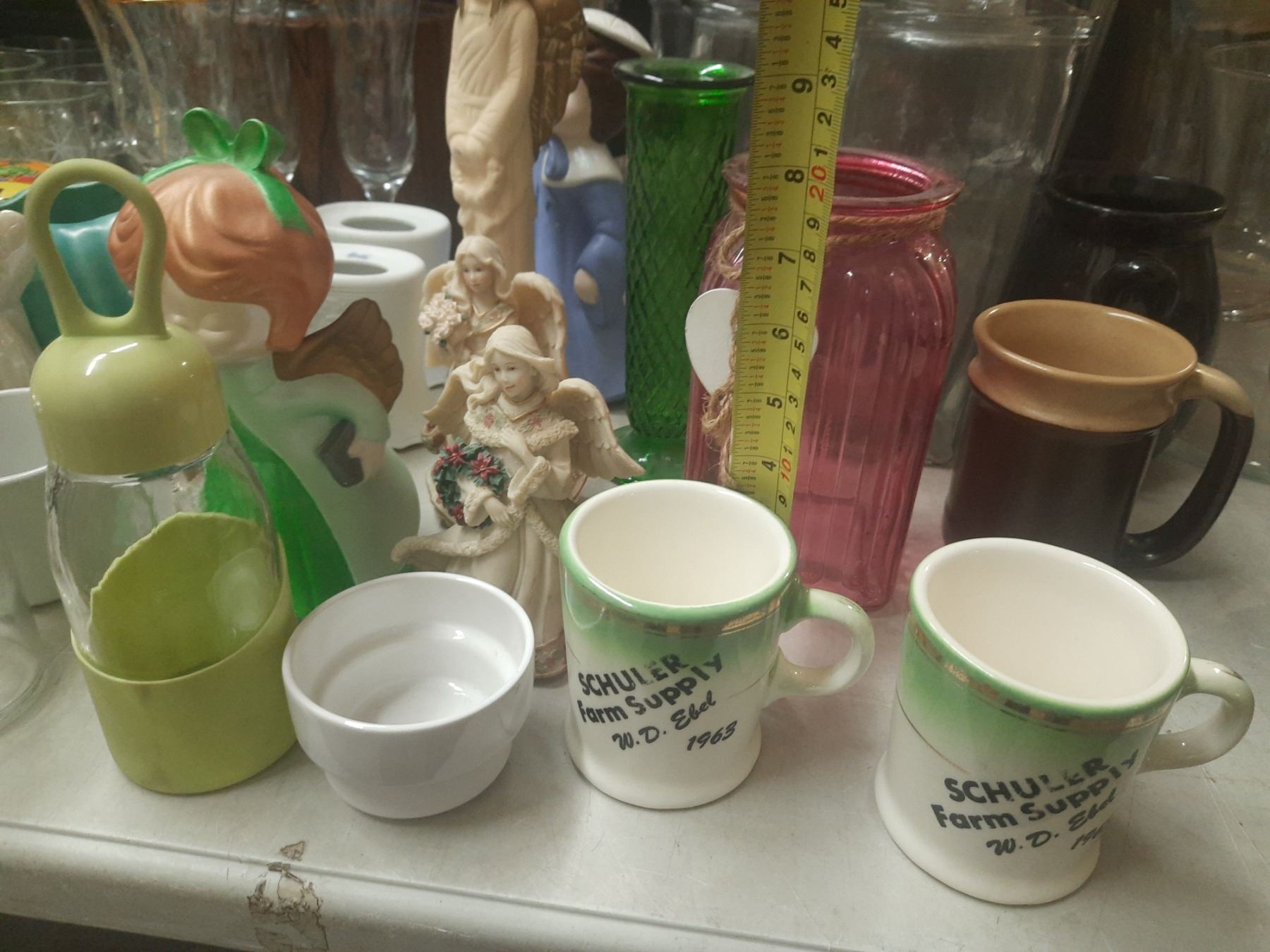 Lot of Cups, Glass, Jar, Storage Container, Large Flower Vase, Bowl, Plate and Small Decorative Item