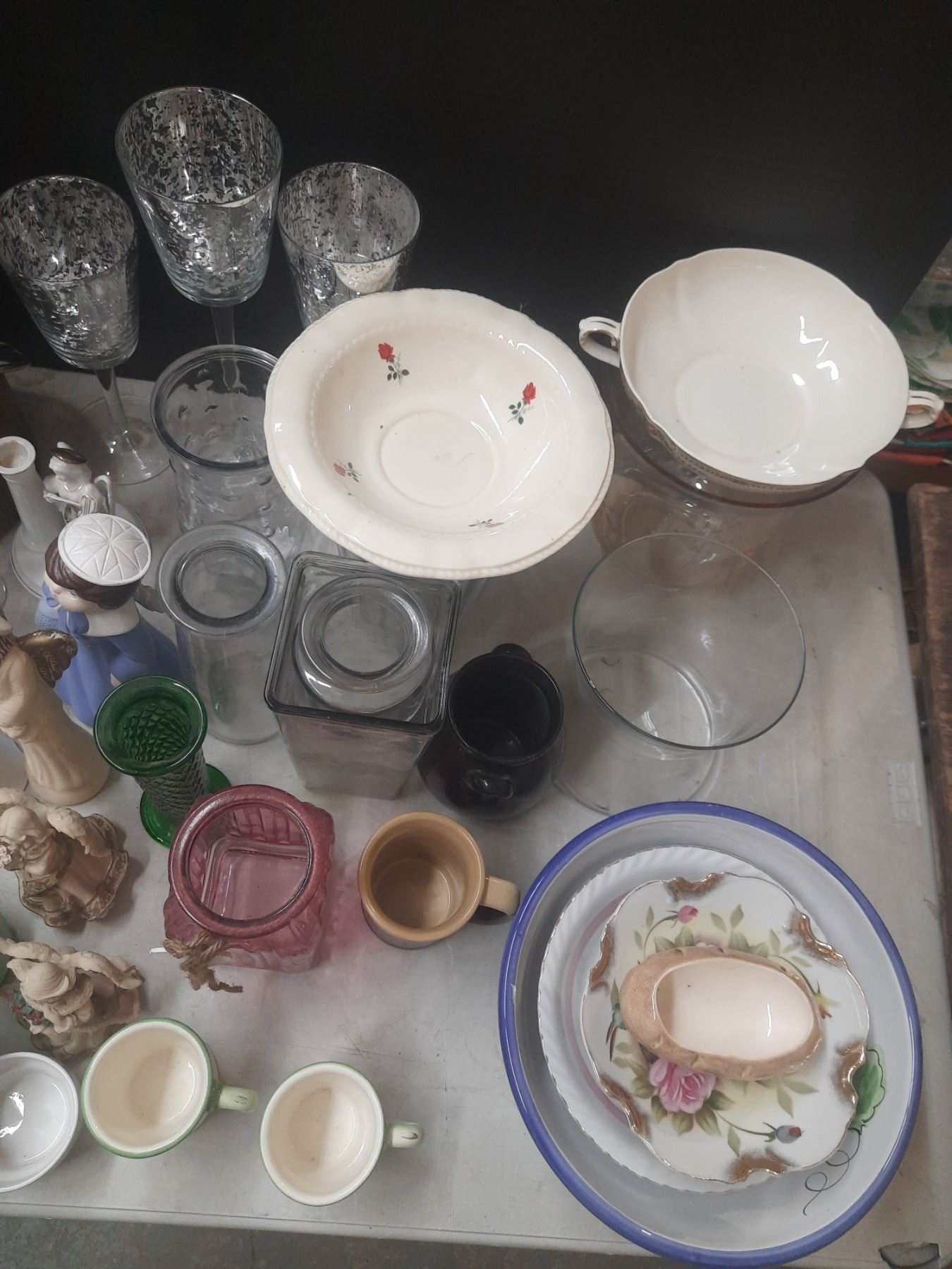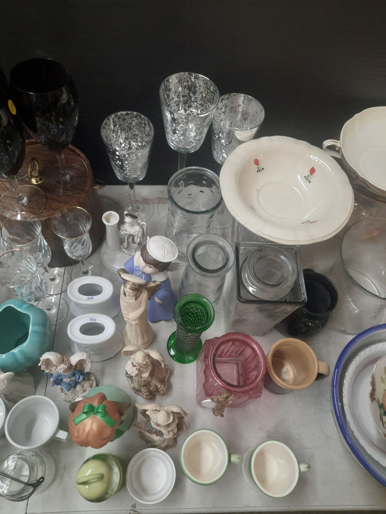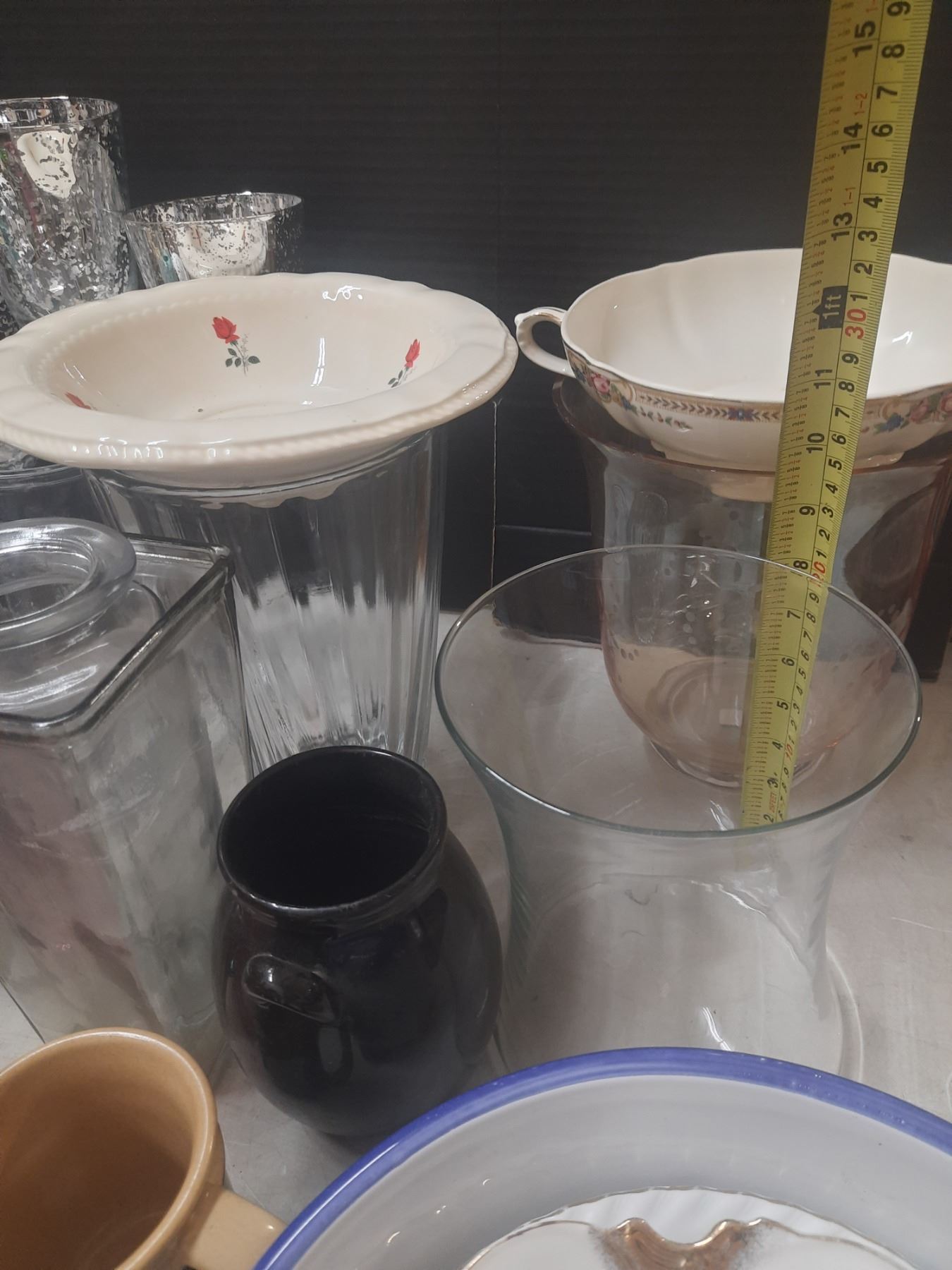 Lot of Cups, Glass, Jar, Storage Container, Large Flower Vase, Bowl, Plate and Small Decorative Item