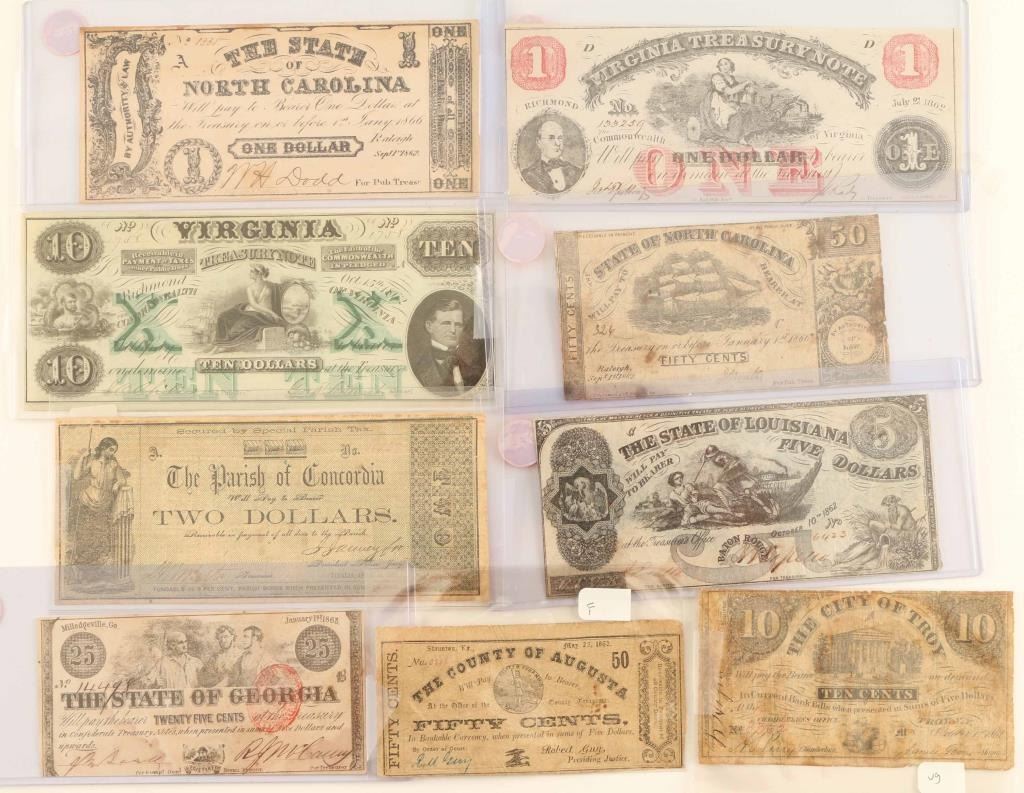Lot includes (9) pieces of currency from various parts of the Confederate States.