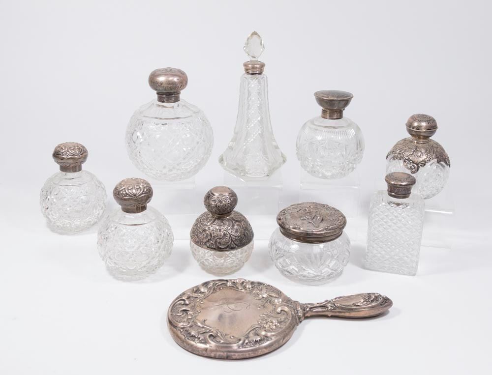 Mismatched. With hand mirror. 10 pieces total. From a Brooklyn, NY collector.
