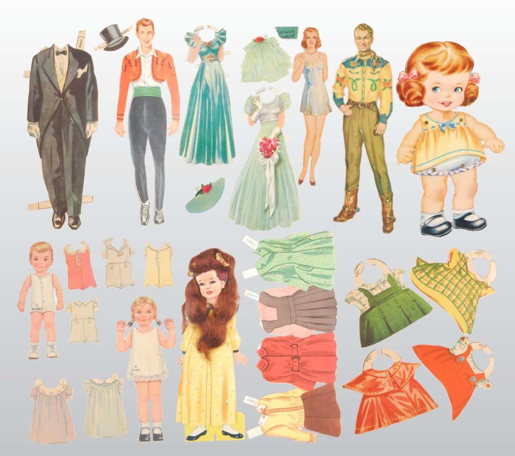 Description ND. large group of celebrity and non-celebraty paper dolls, including the stars Roy Rodgers, Jane Arden, etc. The condition varies from good to excellent. Some sets are complete, some are not.
