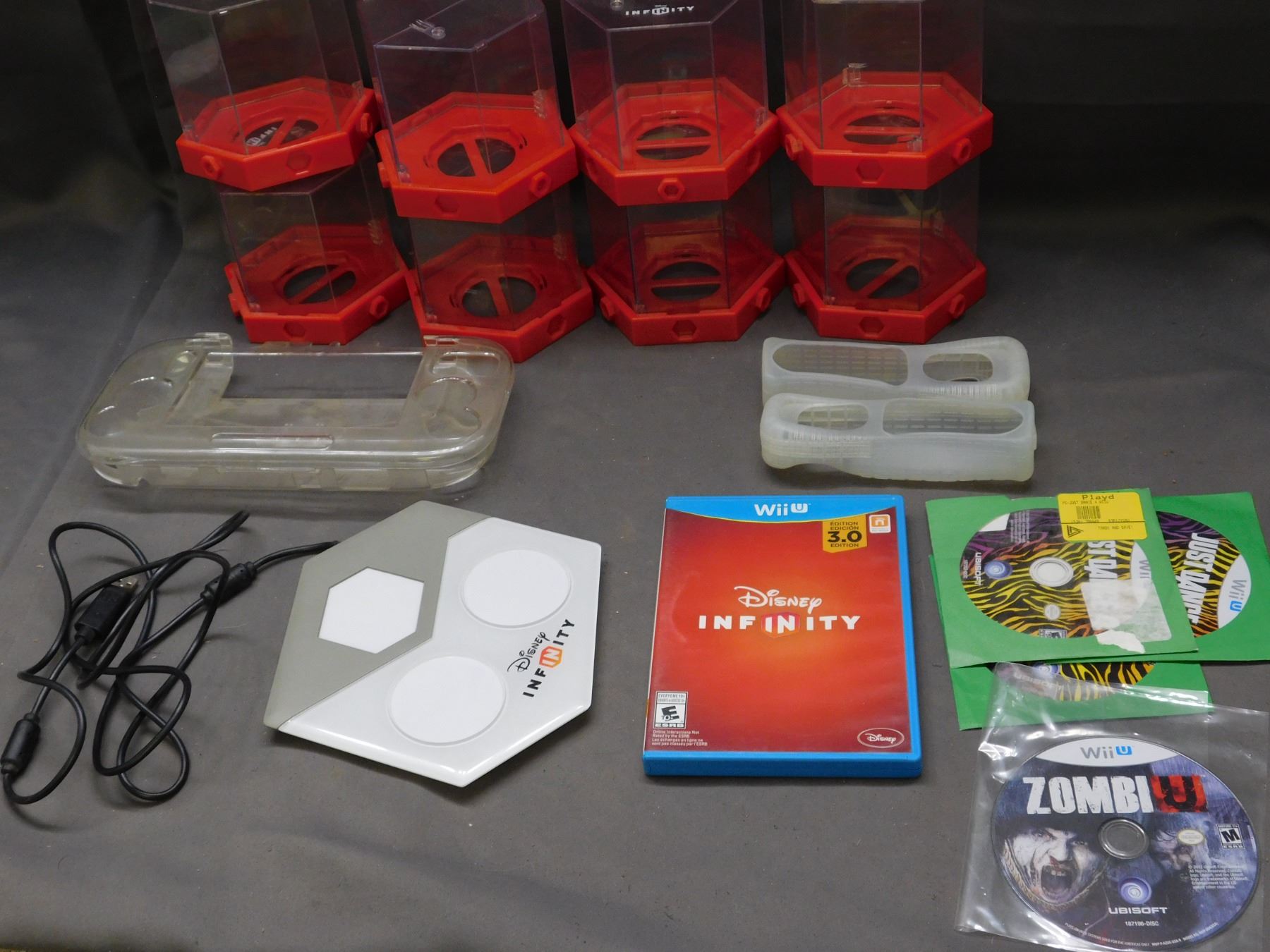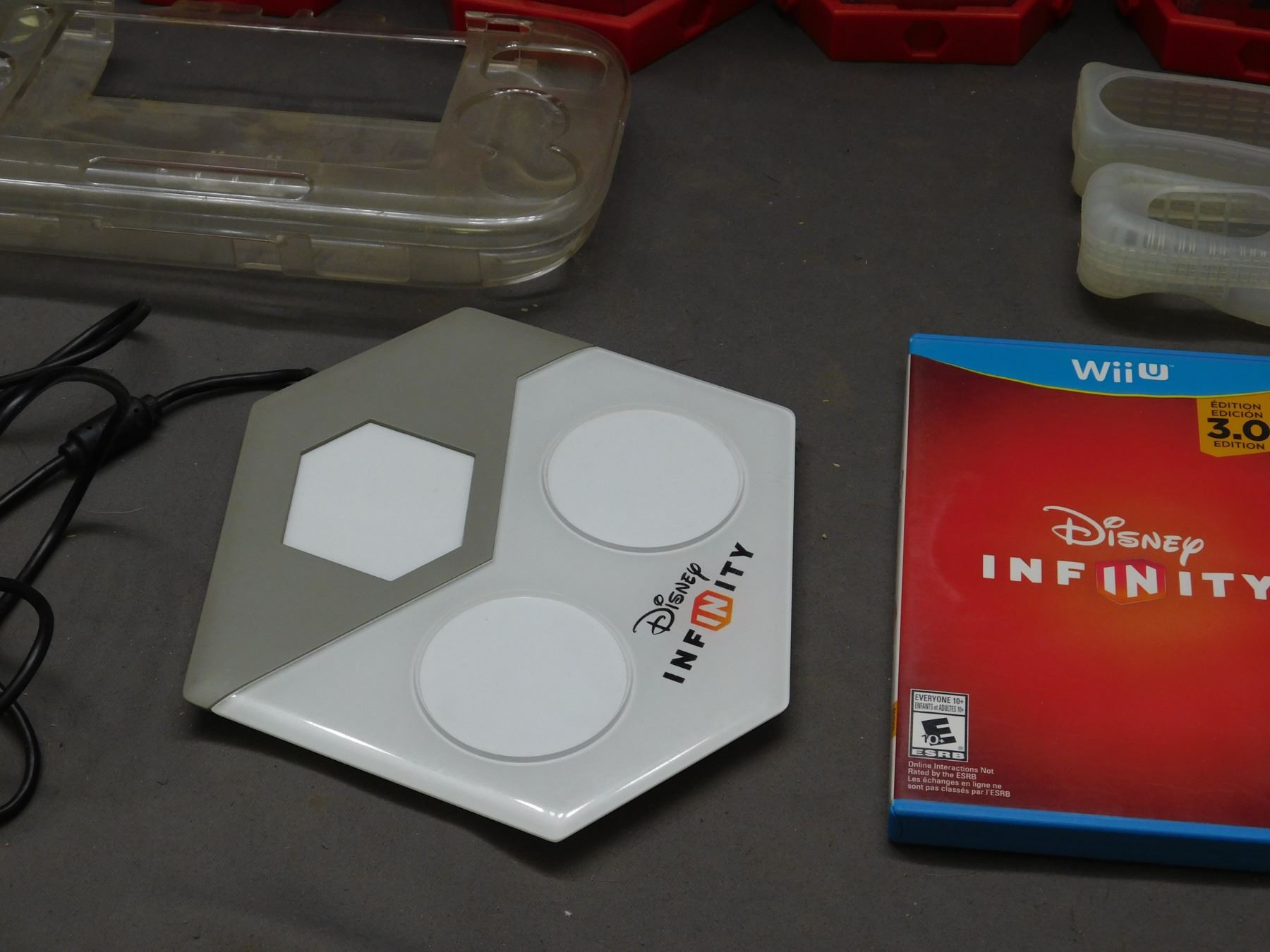 Lot of Disney Infinity Launch Pad, Figure Cases, Game Wii U, Wii Mote Rubbers, Gamepad Cover, etc