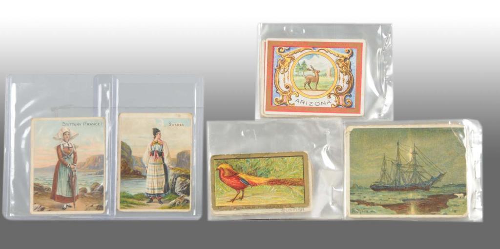 Includes approximately 100 cards, 50 of which that are Helmar State and Country cards from Sweet Caporal and Helmar Turkish cigarettes. Also includes groupings of animals, portraits, explorers, etc. Baseball Cards Tobacciana Condition (Poor - Excellent). Size Largest: 3 - 1/2" x 2 - 1/2".