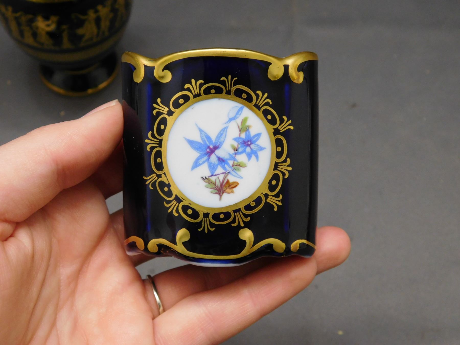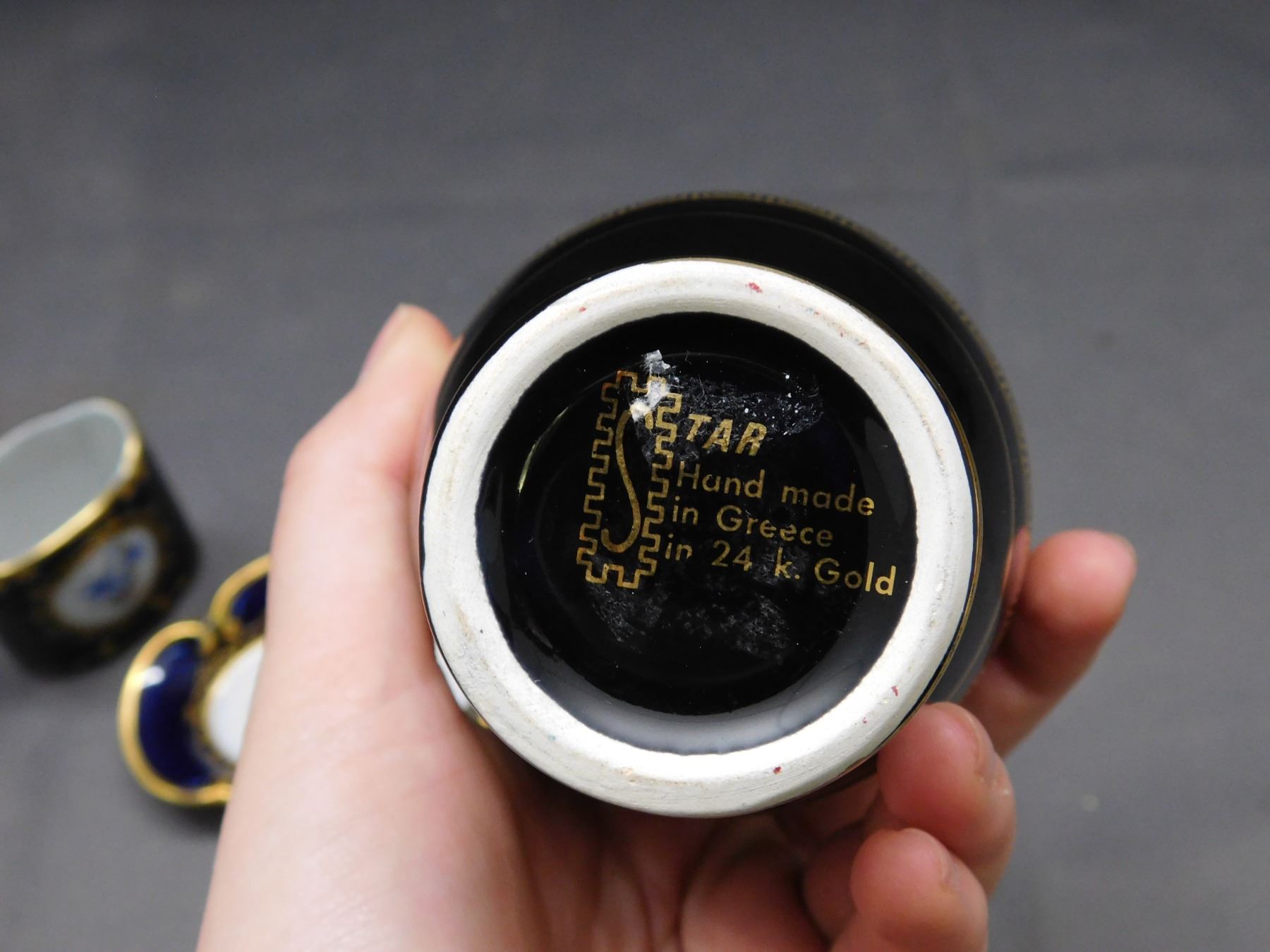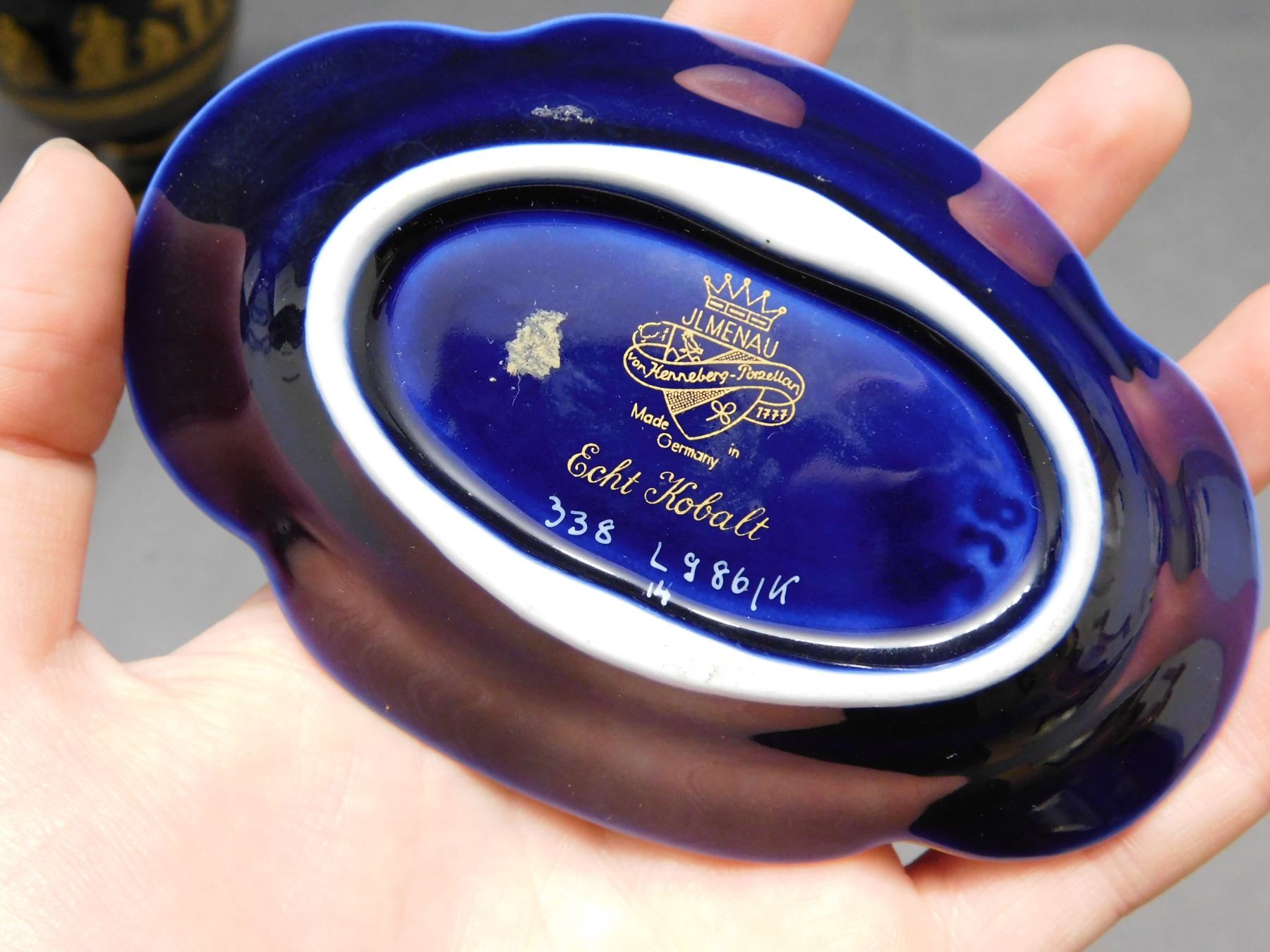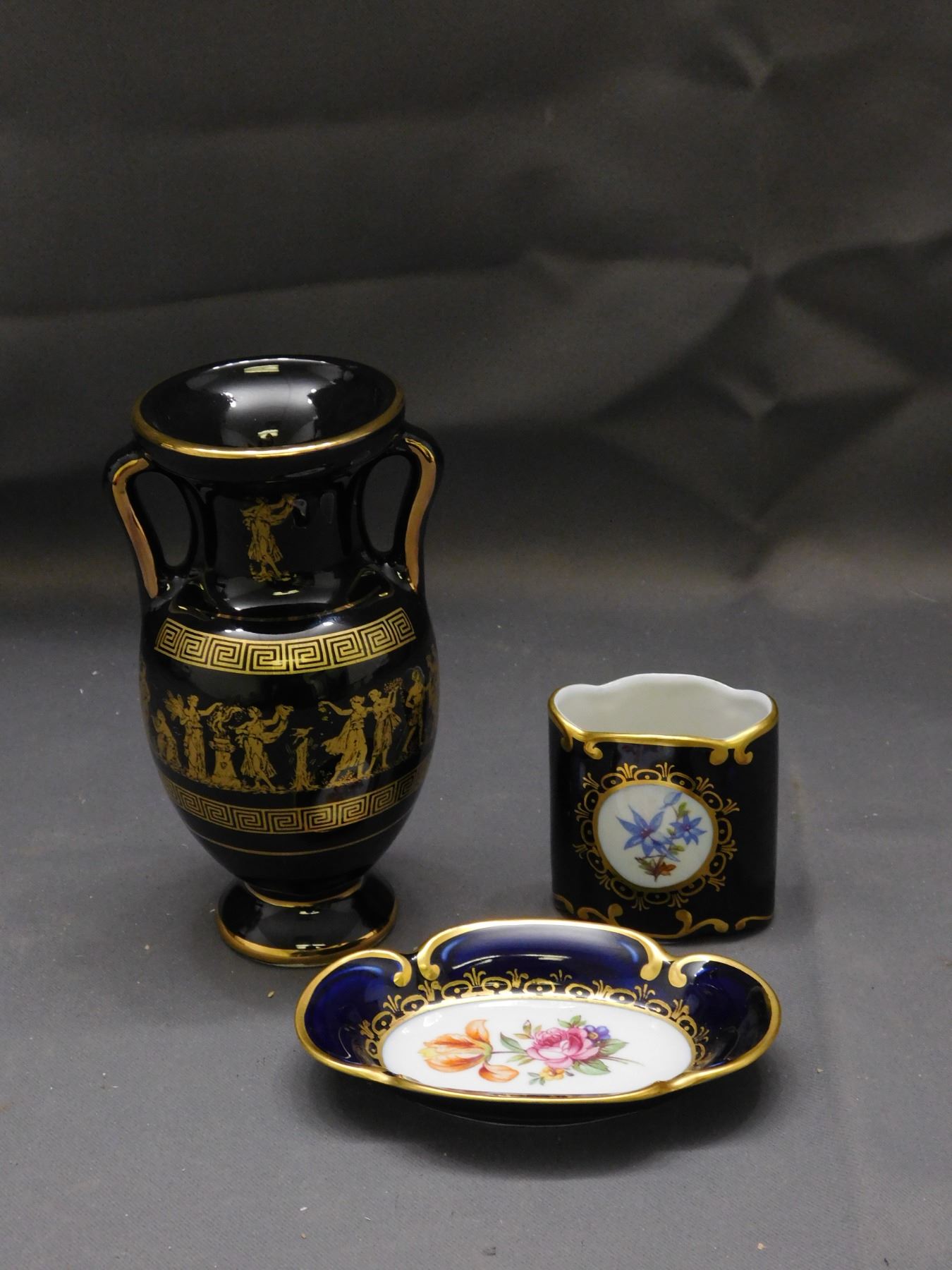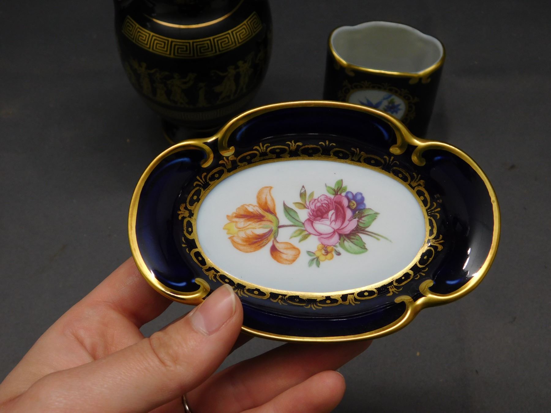 Lot of East Germany JLMENAU ECHT Kobalt China Toothpicks, Tray, Star Made in Greece 24k Gold Vase