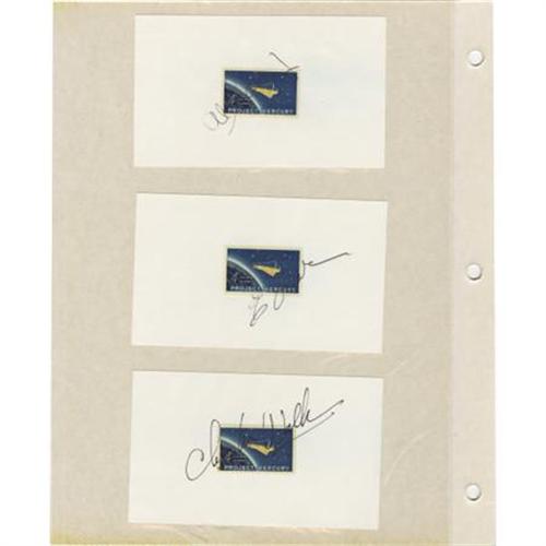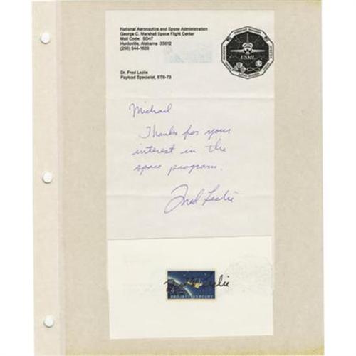 <B>Lot of Eight Astronaut and Balloonist Signatures,</B></I> including: Bertrand Piccard, Fred Leslie, Albert Sacco, Eugene Trinh, Charles Walker, and Ron Garan. Each signature is on or near a space related stamp mounted on a 5" x 3" card. Garan also signed official NASA photographs. Leslie also signed a note. All cards, photos and the note are in acetate album pages. All are very fine. <B></B></I><BR><BR><b>Shipping:</b> Flat Material, Small (<a target="_blank" href="http://www.heritageauctions.com/common/shipping.php">view shipping information</a>)