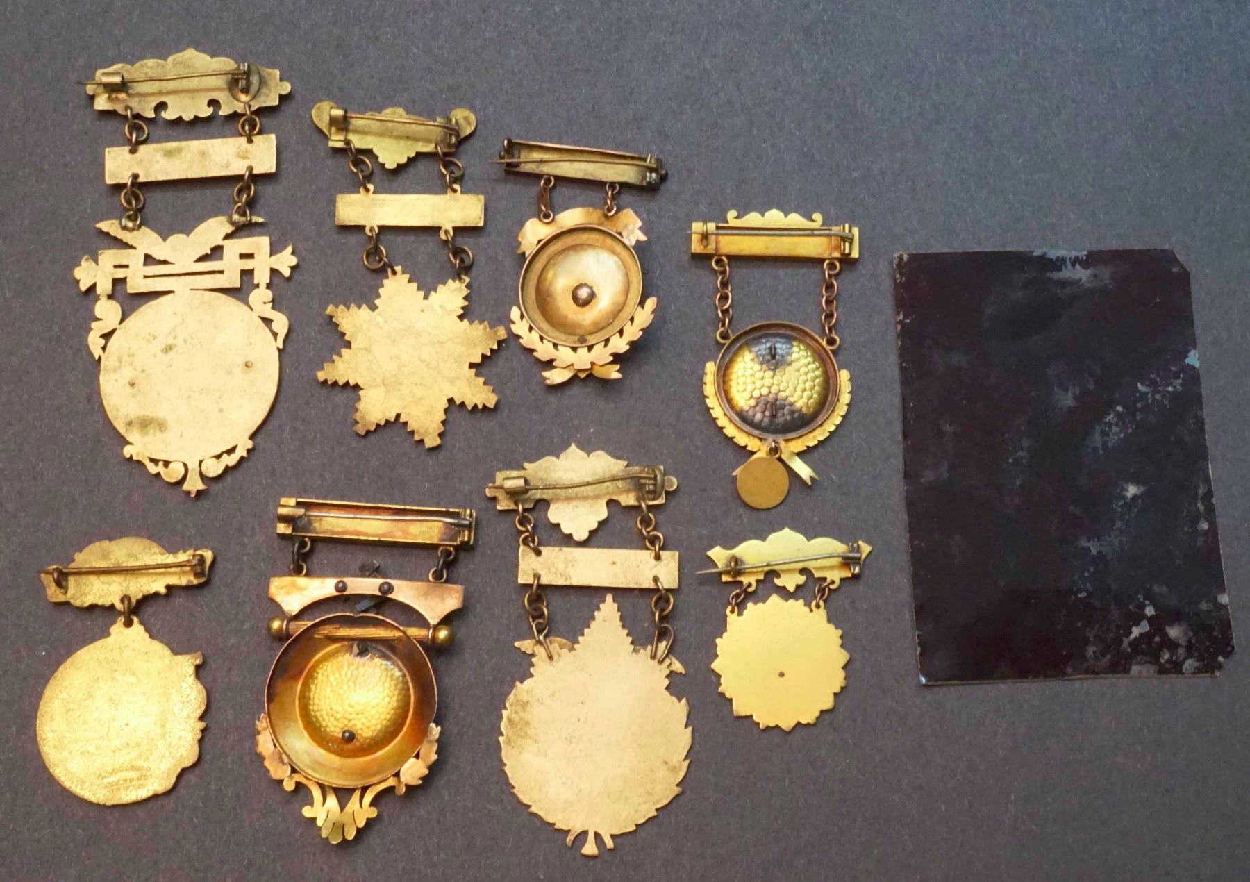 Lot of Eight Gold-coloured Presentation Medals, most or all Sporting, all different