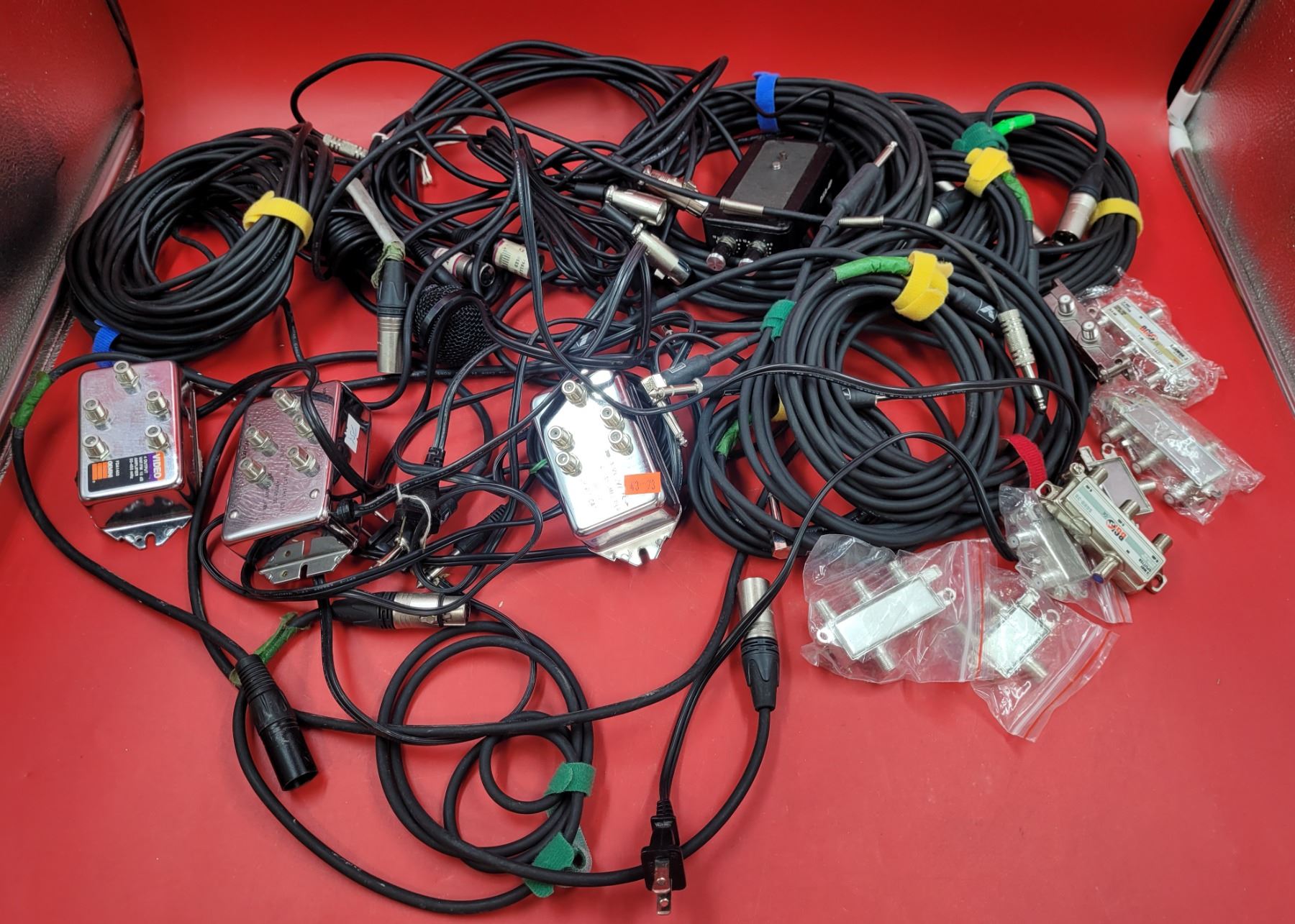 Lot of Electronic Accessories w/ 4-Output VHF/FM Amplifier, 2-Way Splitter, Microphone, & More