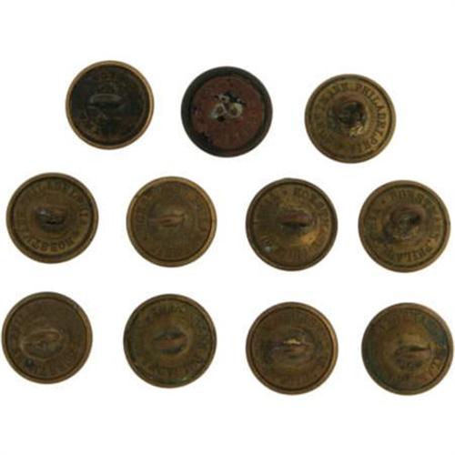 <B>Lot of Eleven Civil War Virginia State Buttons,</B></I> 15mm, ten are staff buttons, Horstmann (Albert - VA-20); one is a bronzed Scovill button without the shank. All others are fine. <B></B></I><BR><BR><b>Shipping:</b> Miscellaneous Collectibles, Smal (<a target="_blank" href="http://www.heritageauctions.com/common/shipping.php">view shipping information</a>)