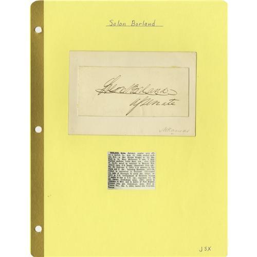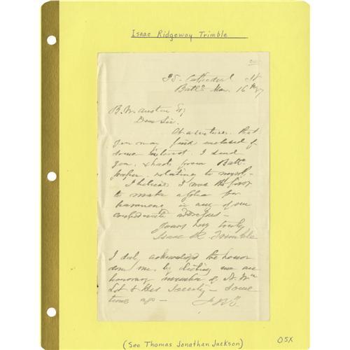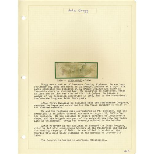 <B>Group Lot of Eleven Confederate Generals' Autographs</B></I> consisting of: <BR><B>Howell Cobb</B></I>- Lengthy 1857 ALS as secretary of the treasury. He also served as governor of Georgia. <BR><B>Howell Cobb</B></I>- Clipped signature. <BR><B>John Bratton</B></I>- Signature card with rank written below. <BR><B>Lloyd Tilghman</B></I>- Lengthy ALS dated September 6, no year. <BR><B>Robert Seldon Garnett</B></I>- Large card with pencil signature and rank below. <BR><B>Maxey Gregg</B></I> (killed at Fredericksburg)- Clipped signature with rank below, as a U.S. Army major. <BR><B>John Gregg</B></I> (killed in action near Richmond October 7, 1864)- Clipped signature, stained. <BR><B>Isaac Ridgeway Trimble</B></I>- 1887 ALS, signed with initials "<I>I.R.T</B></I>". <BR><B>Francis S. Bartow</B></I> (killed at First Bull Run)- Clipped signature. <BR><B>Solon Borland</B></I>- Signature card as U.S. senator from Arkansas. <BR><B>Pinkney Downie Bowles</B></I>- 1891 ALS.<BR><BR><b>Shipping:</b> Small Flat (<a target="_blank" href="http://www.heritageauctions.com/common/shipping.php">view shipping information</a>)
