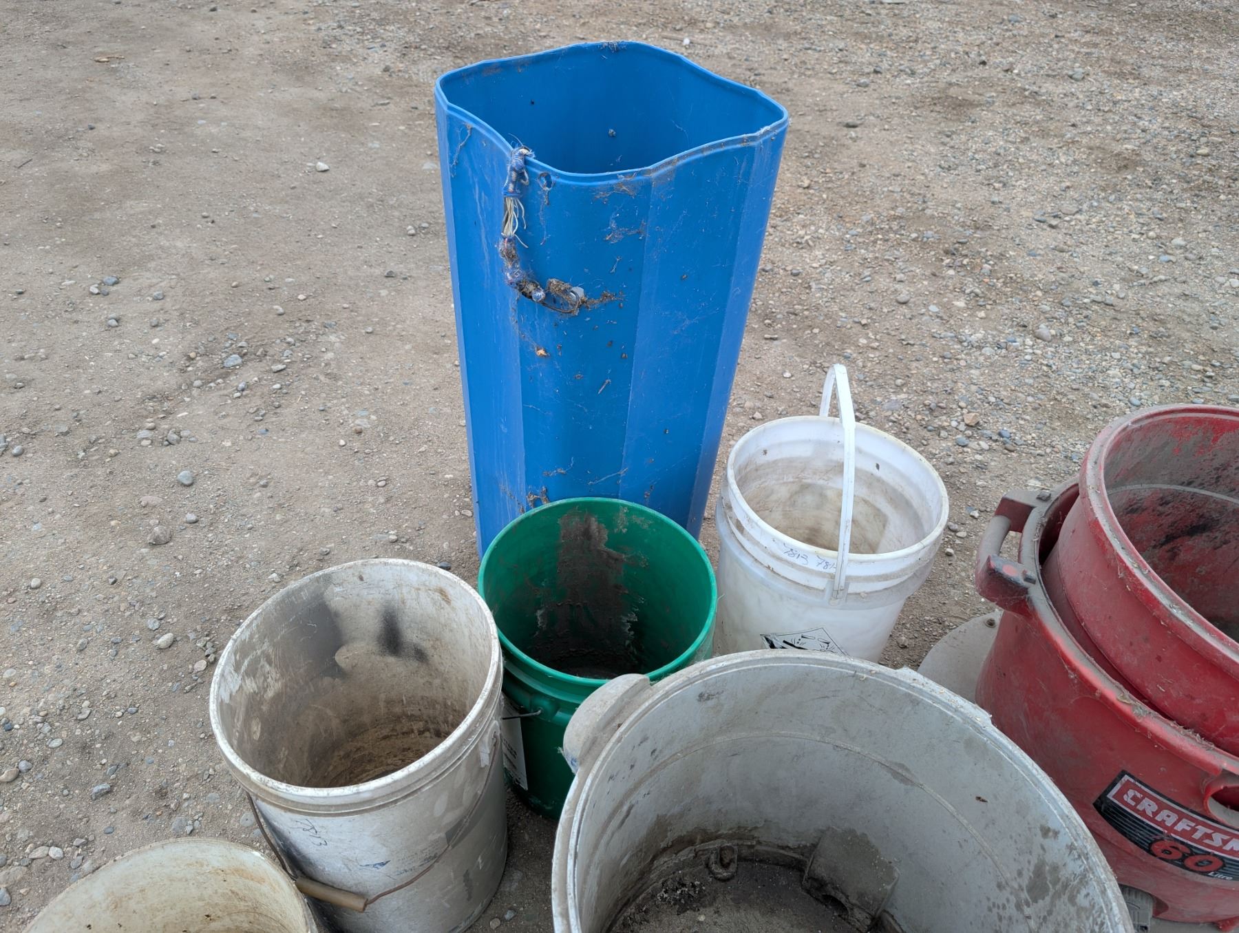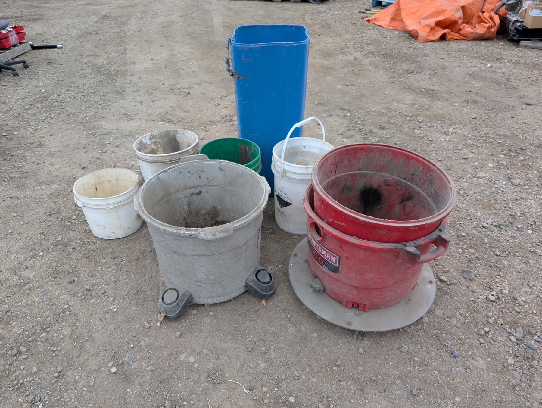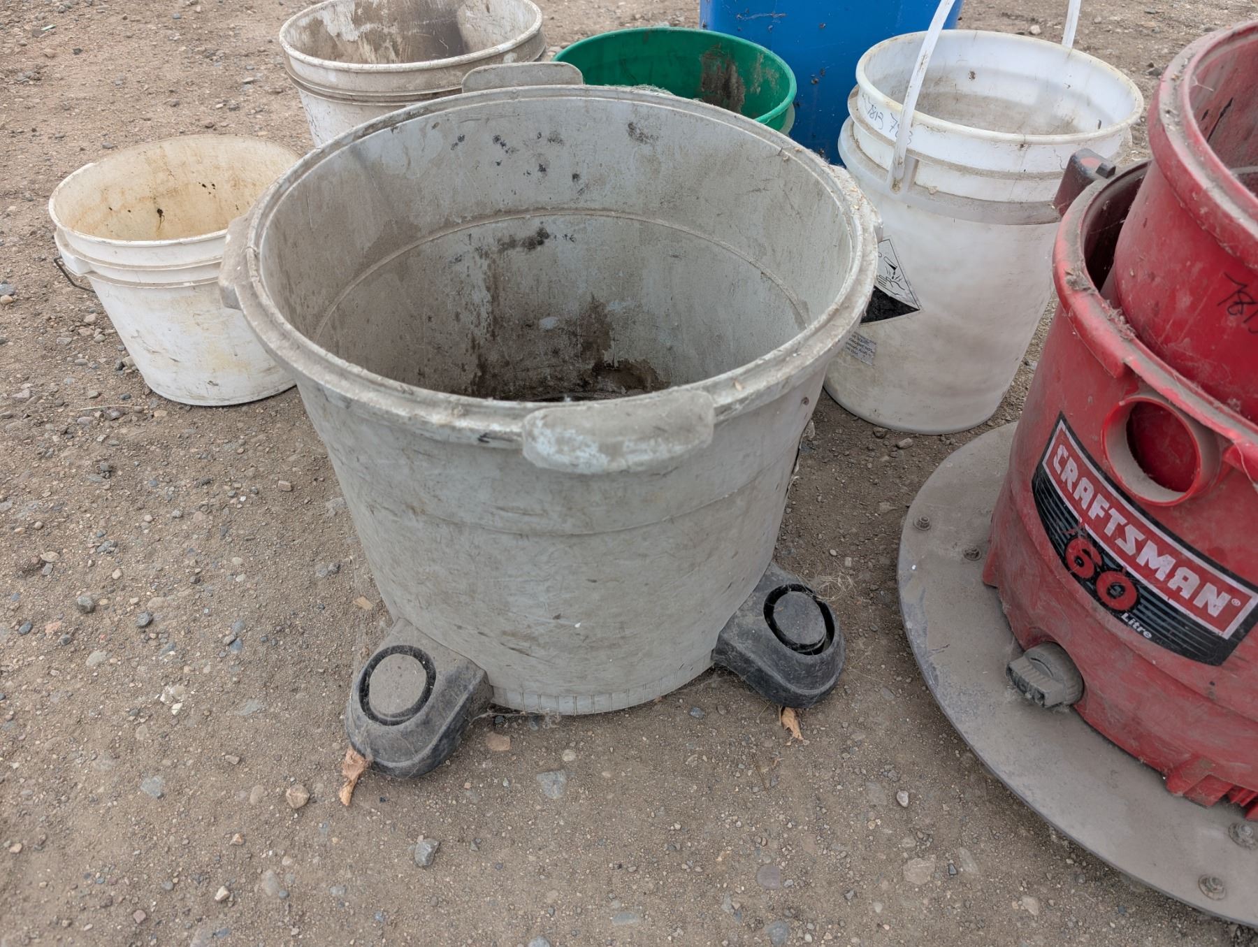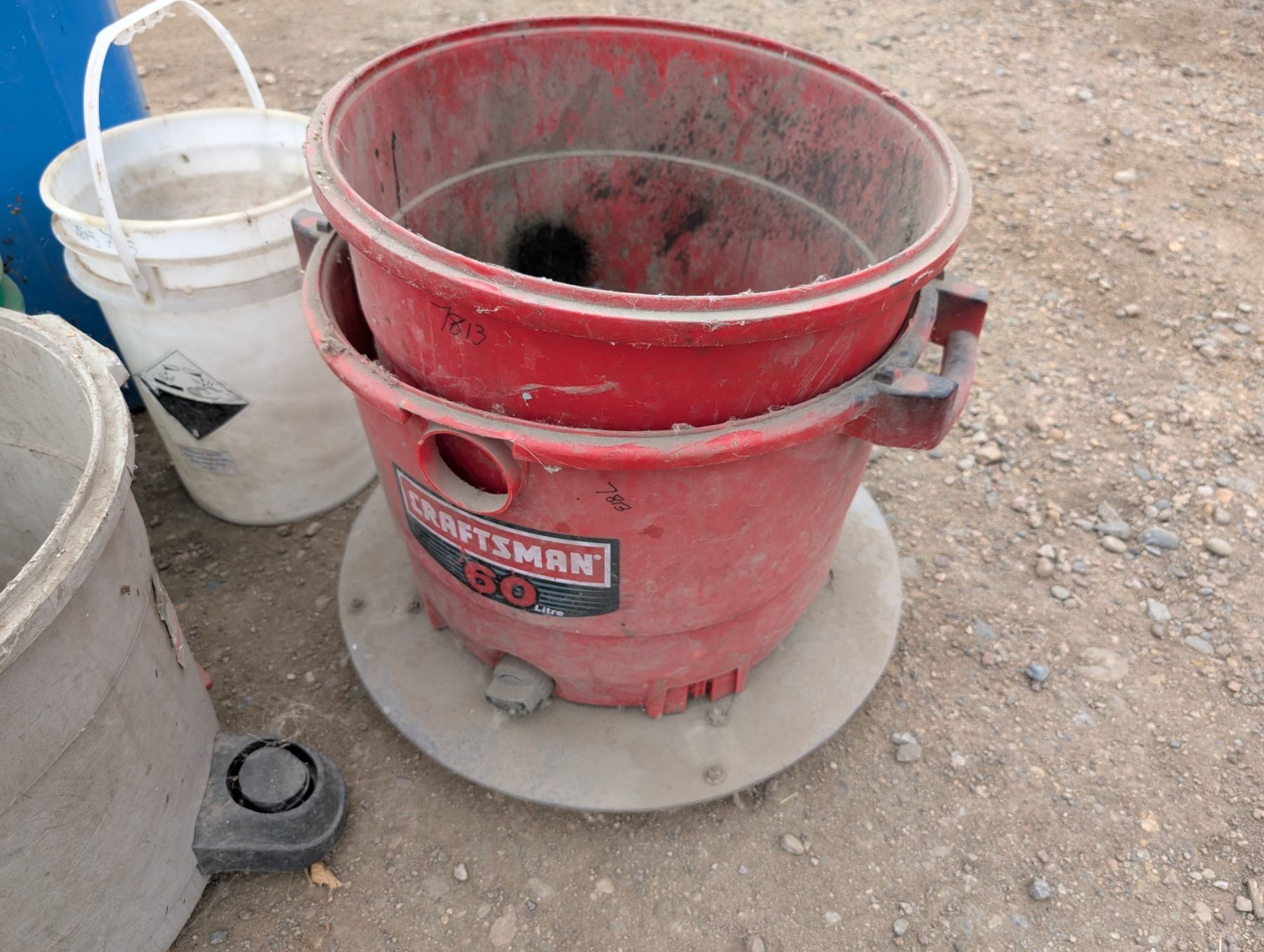 Lot of Empty Buckets, Empty Shop Vacs, and etc.
