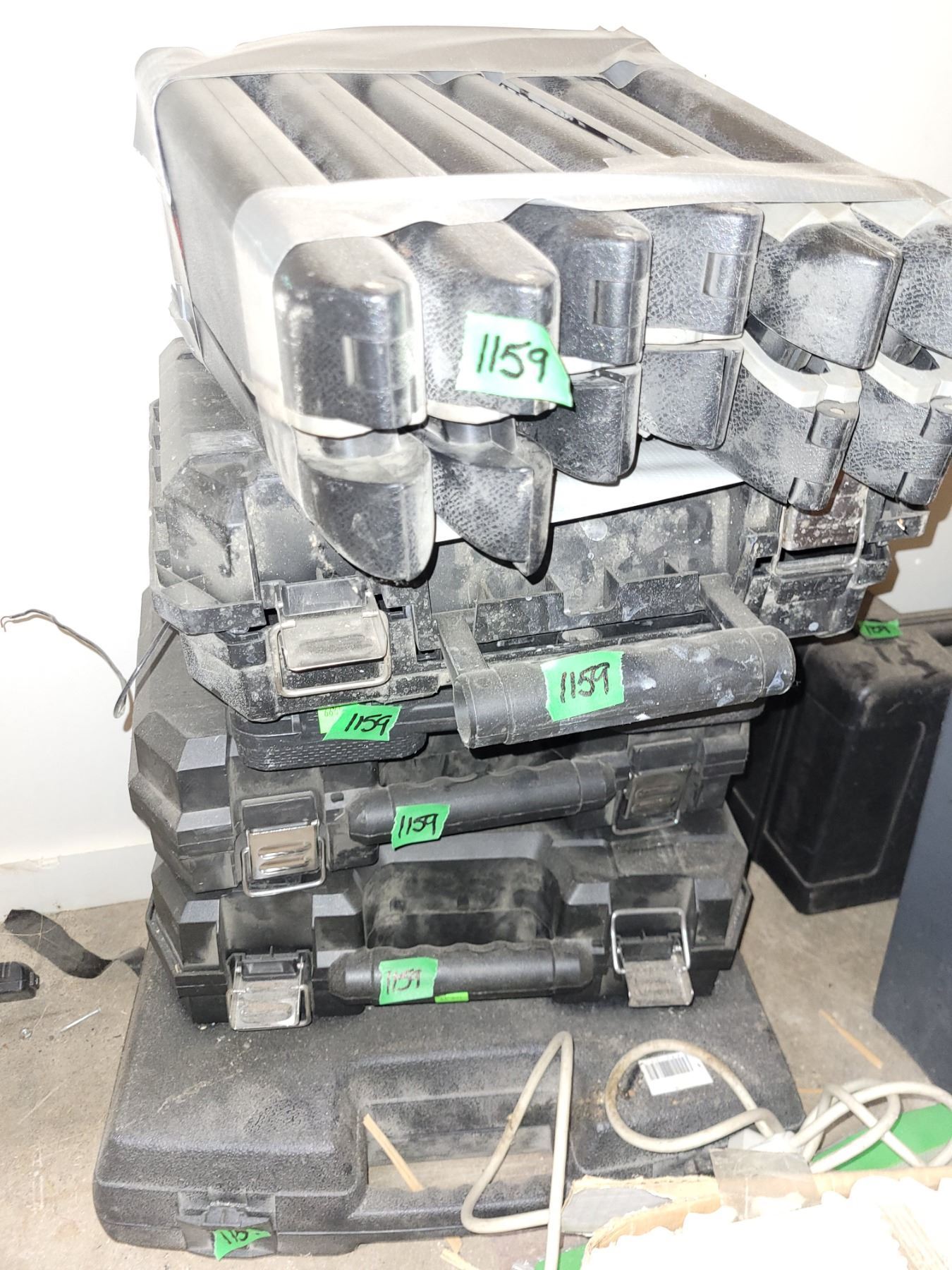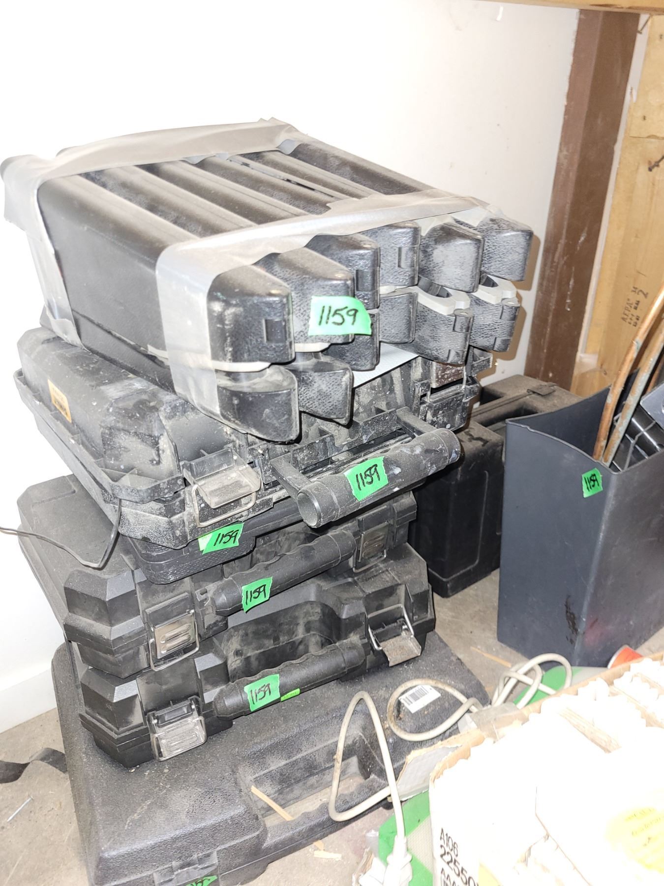 Lot of Empty Tool Cases + Small Garbage Can with Contents