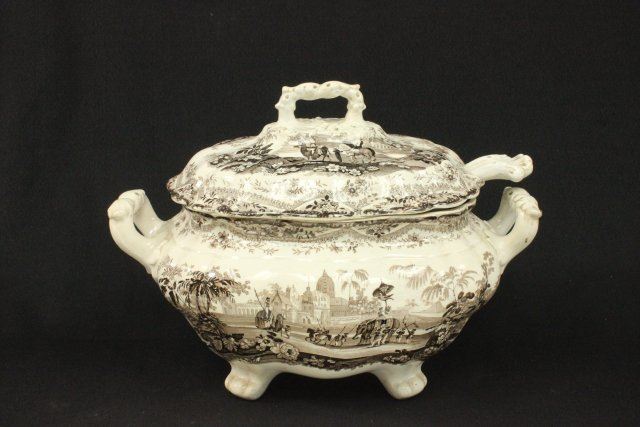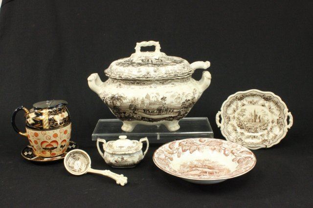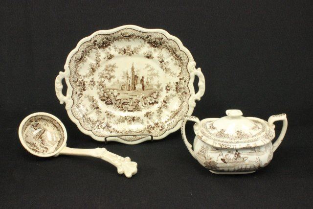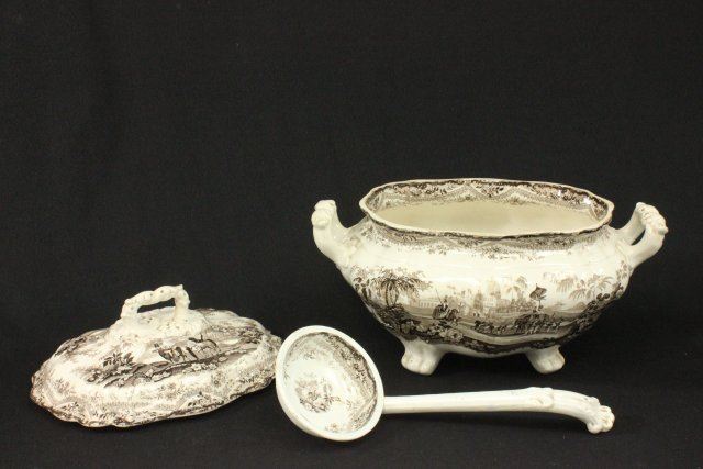 Including, soup tureen & ladle, sugar bowl, ladle, serving bowl, small tray, pitcher with underplate. 8 pieces. From a private NYC estate.