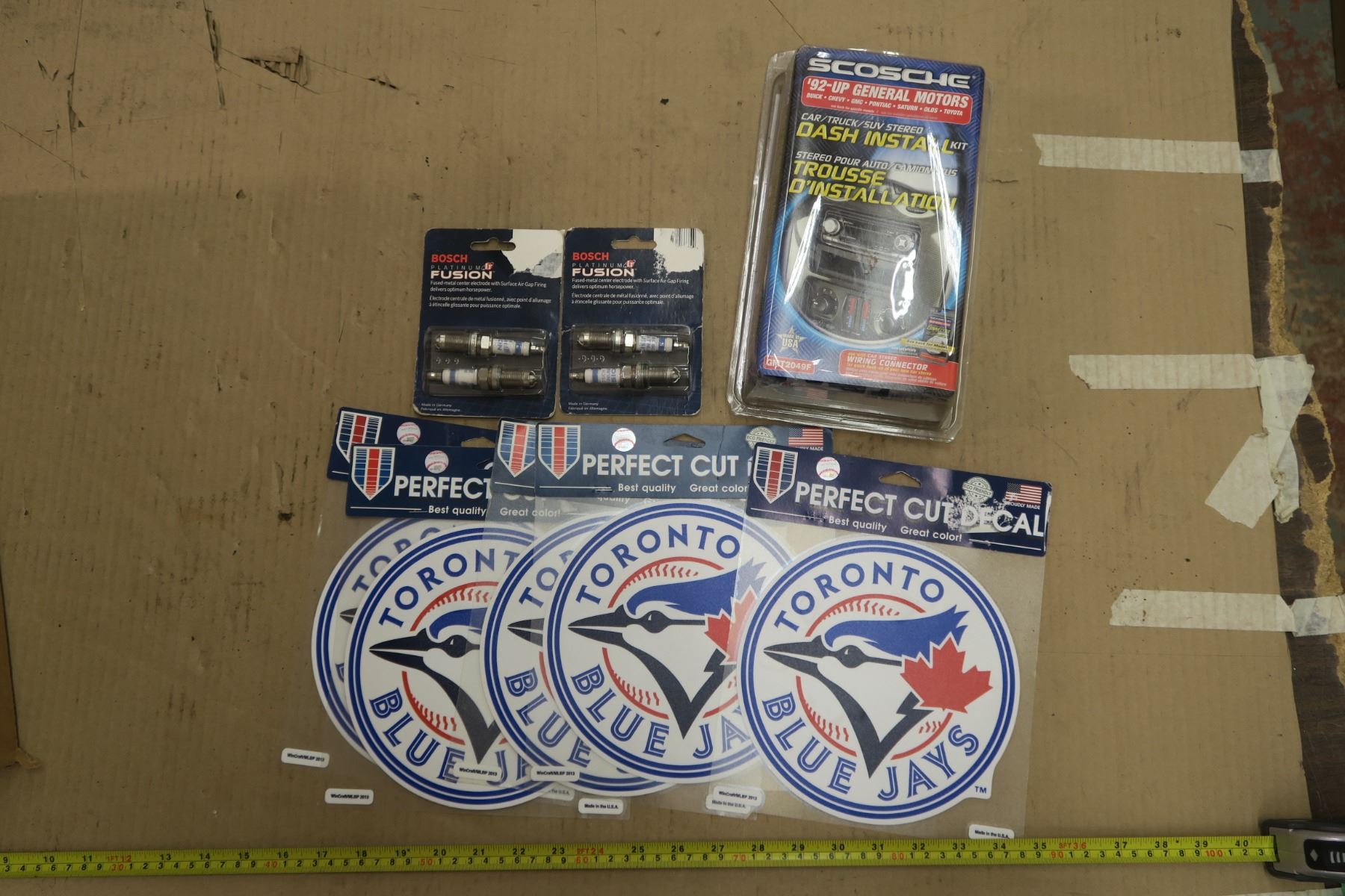Lot of Exit Signs, Toyota Clock, 5×Bluejays Decals, 2×Bosch Platinum Spark Plugs, Car Stereo Install Kit