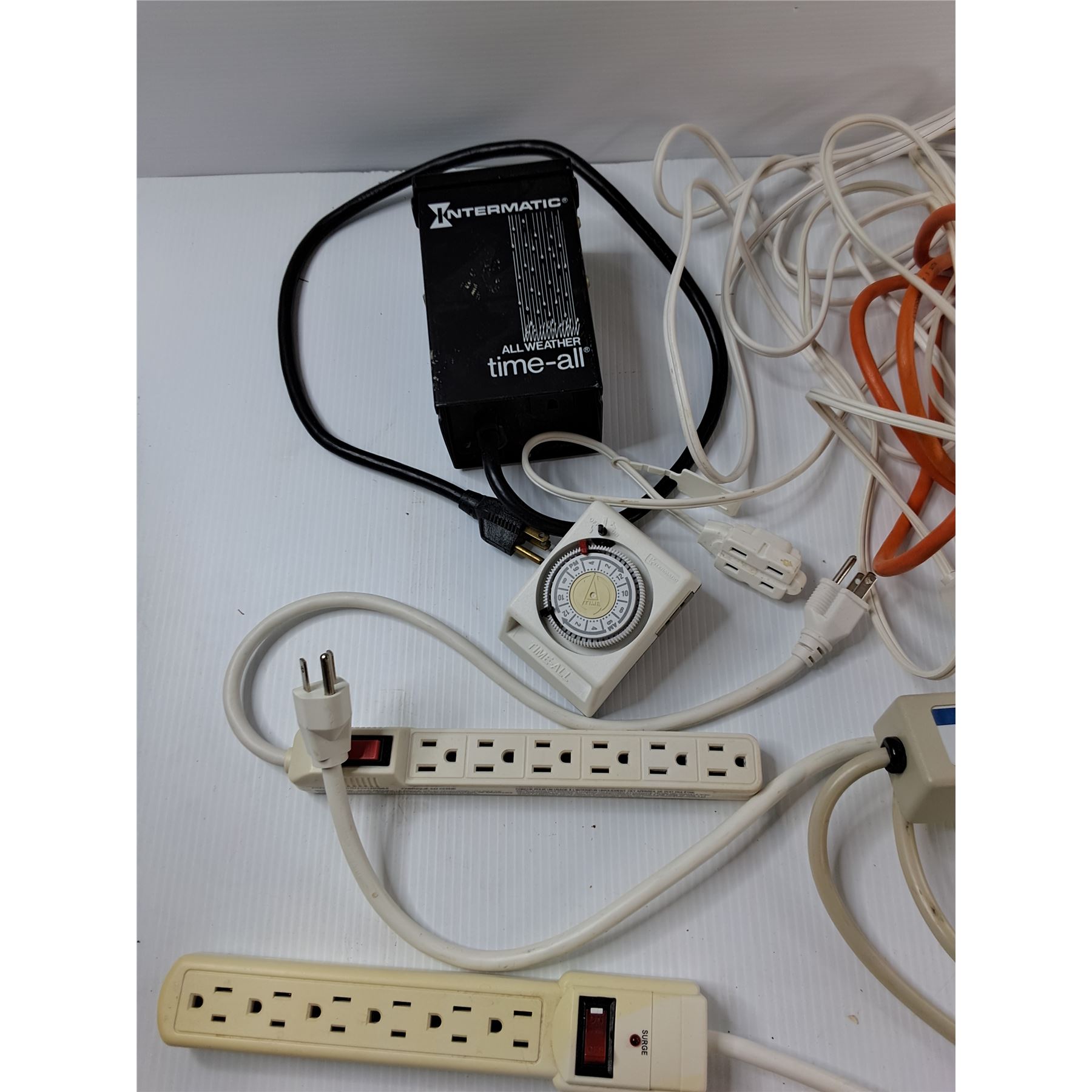 Lot Of Extension Cords, Various Lengths, (2) Time All timers, All As is