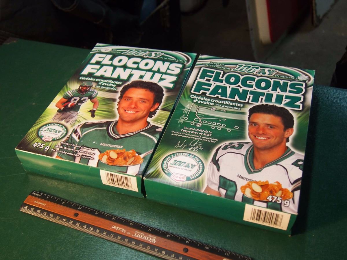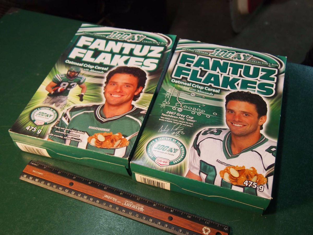 Lot of Fantuz Flakes Cereal Boxes (2), Unopened (Home & Away Jersey On Box Fronts)