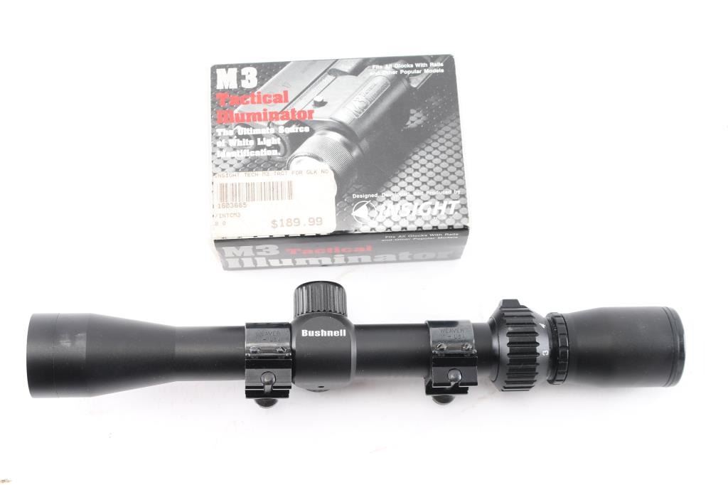 (1) Bushnell 3X-9X 32mm scope. (1) M3 Tactical illuminator.