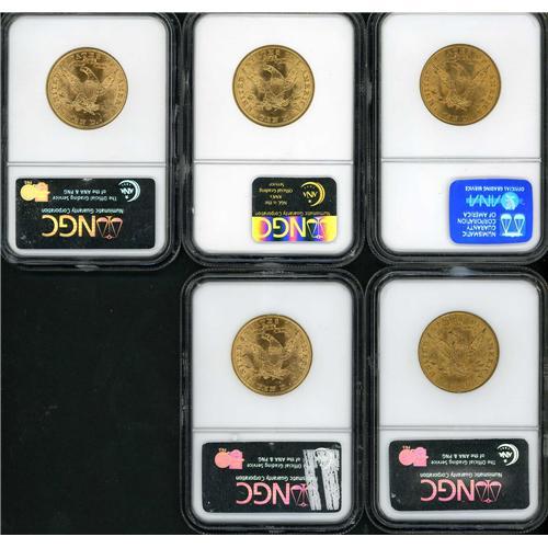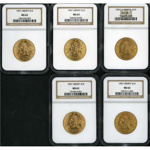 Includes: 1907 NGC MS63, 1907 NGC MS63, 1907 NGC MS63, 1907 NGC MS63, 1907 NGC MS63. Lot of 5 coins