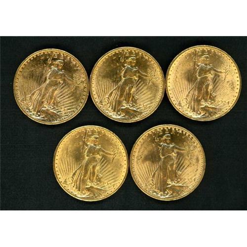 Lot of Five 1924 $20 Saint-Gaudens RAW AU-BU