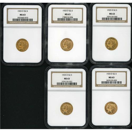 Includes: Five 1925-D NGC MS63. Lot of 5 coins.
