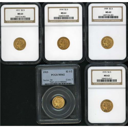 Includes: 1909 NGC MS62, 1911 NGC MS63, 1914 NGC MS61, 1915 NGC MS62, 1913 PCGS MS62. Lot of 5 coins.