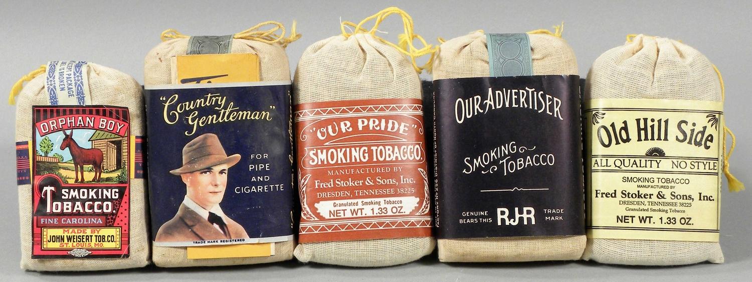 Lot of Five Tobacco Pouches including Orphan Boy, Country Gentleman, Old Hill Side, Our Advertiser and "Our Pride". All in very good to excellent condition. Pack sizes vary. Start Price $40