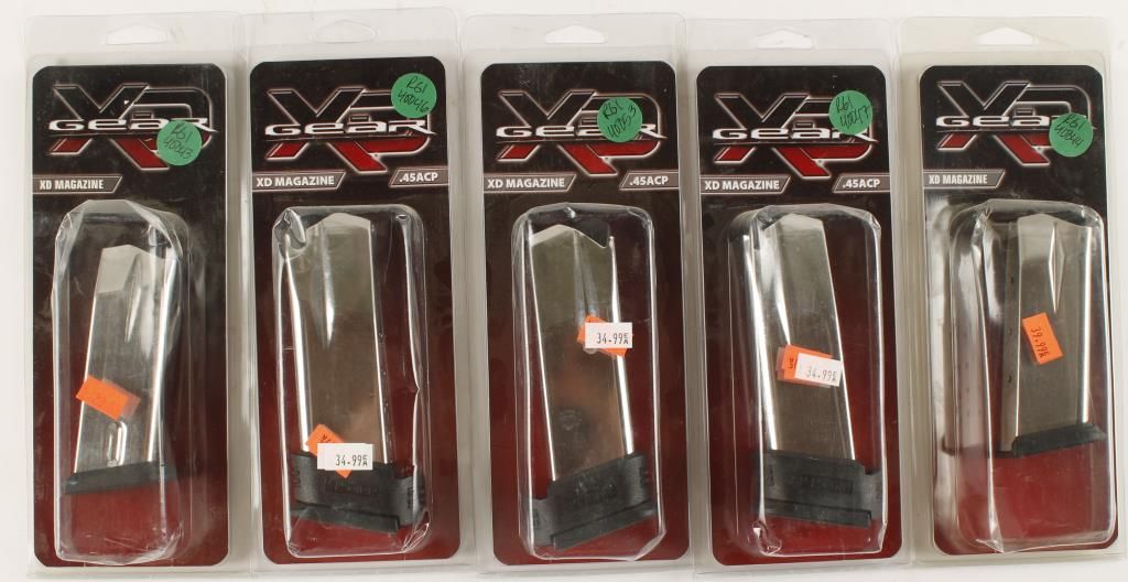 Three 13-round .45ACP, one 10-round 9mm and one 9- round 40S&W.