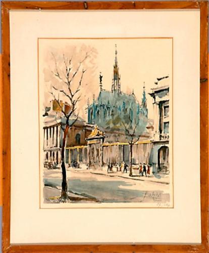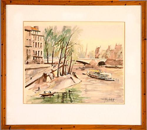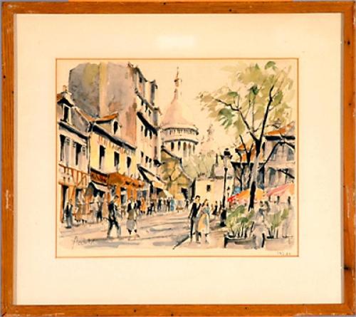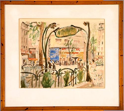 Lot of Five Parisian Signed Color Lithographs: Scene along the Seine, Urban Scene, Scene at a Metro