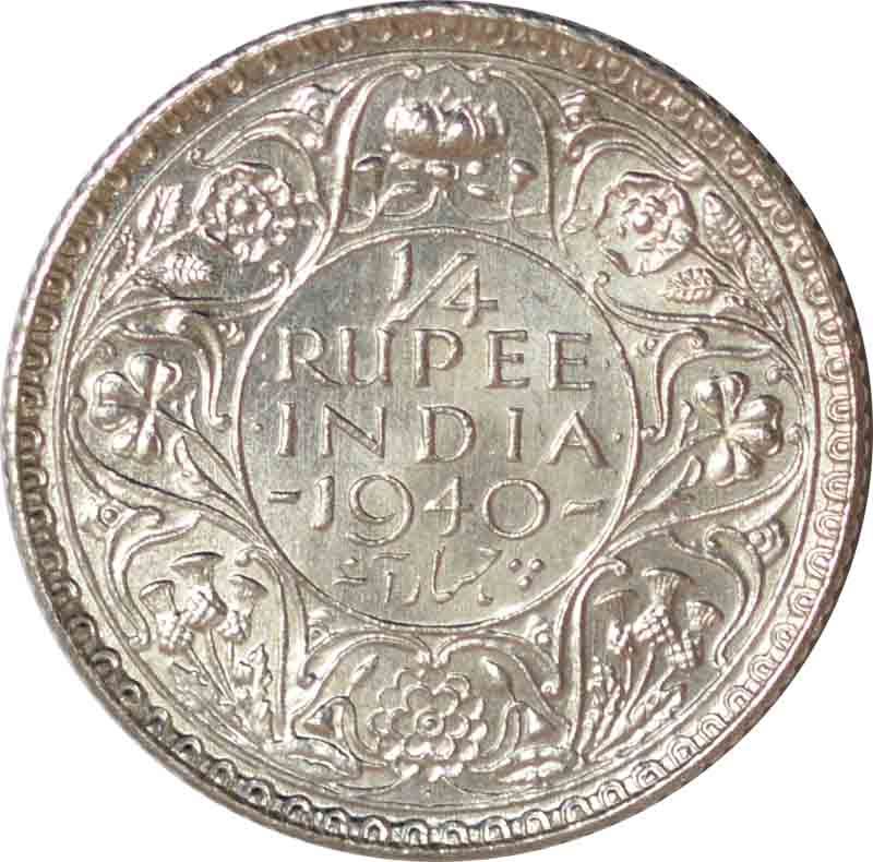 Lot of Five Quarter Rupee of King George VI of Bombay Mint of 1940.