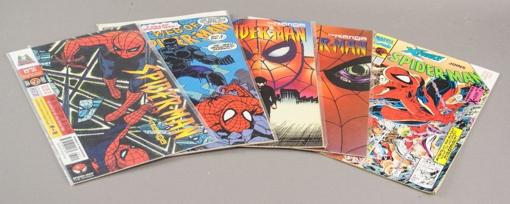 Lot of five Spider-Man comic books, various issues 1991-1999. 26 x 17 cm 271 grams. Issues include: