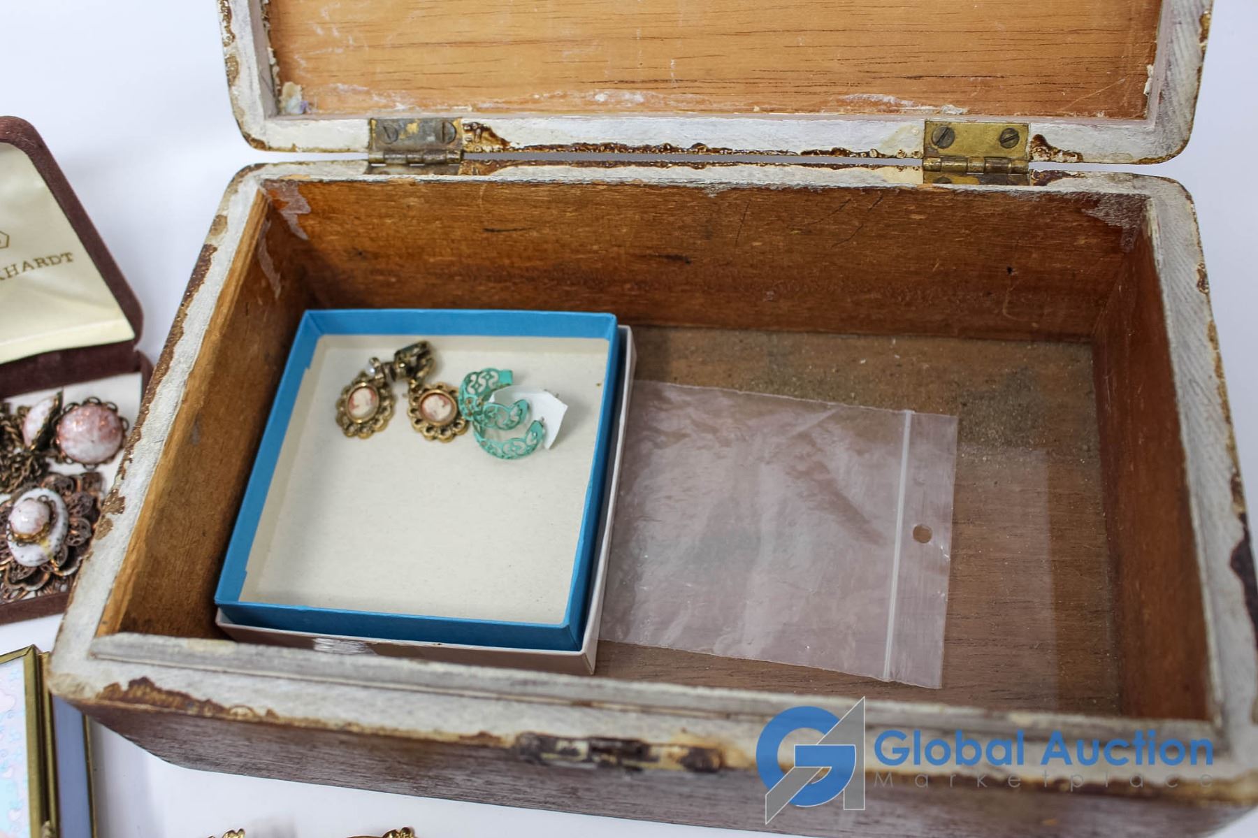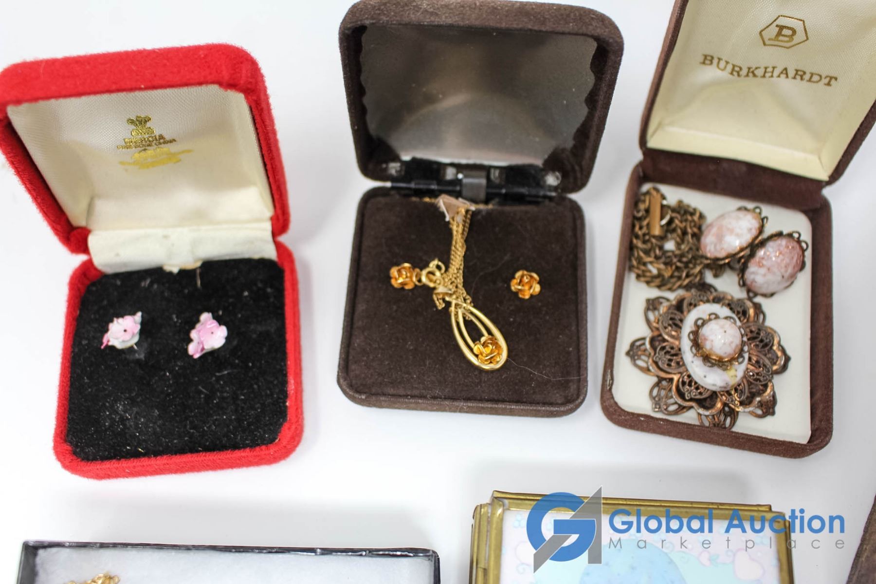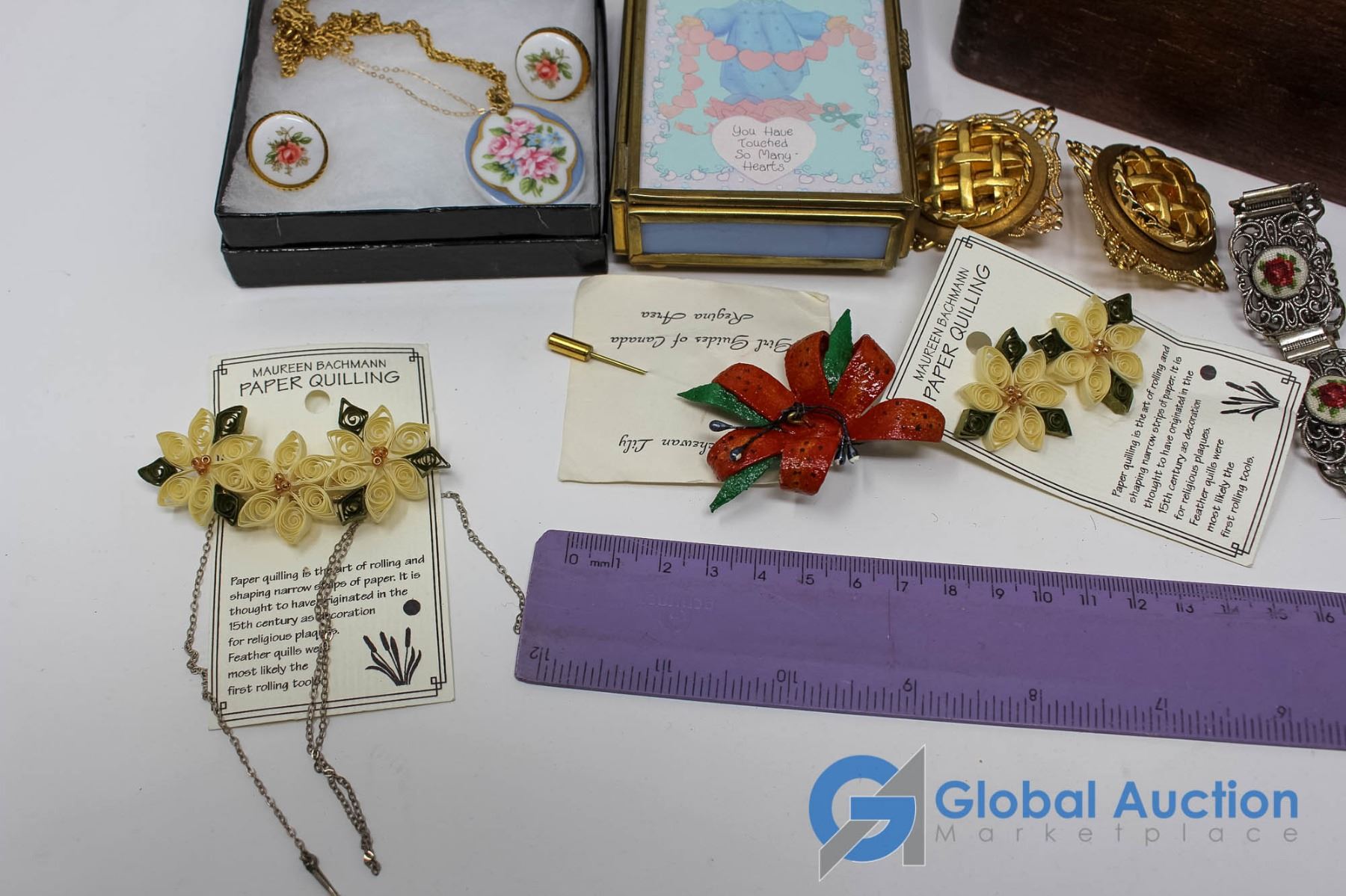 Lot of Flower Themed Jewlery With Latching Wooden Box