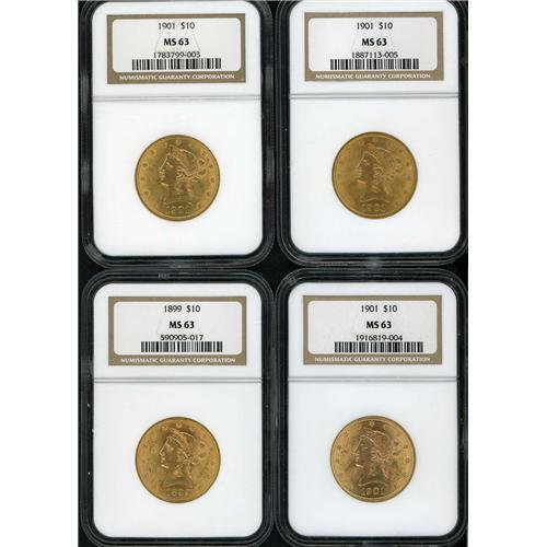 Includes: 1899 NGC MS63, 1901 NGC MS63, 1901 NGC MS63, 1901 NGC MS63. Lot of 4 coins.