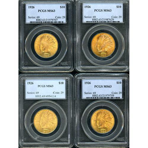 Lot includes: 4-1926 PCGS MS63. Lot of 4 coins.