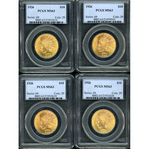 Lot includes: 4- 1926 PCGS MS63. Very PQ group--the best of the MS63s. Three have lovely orange toning. Lot of 4 coins.